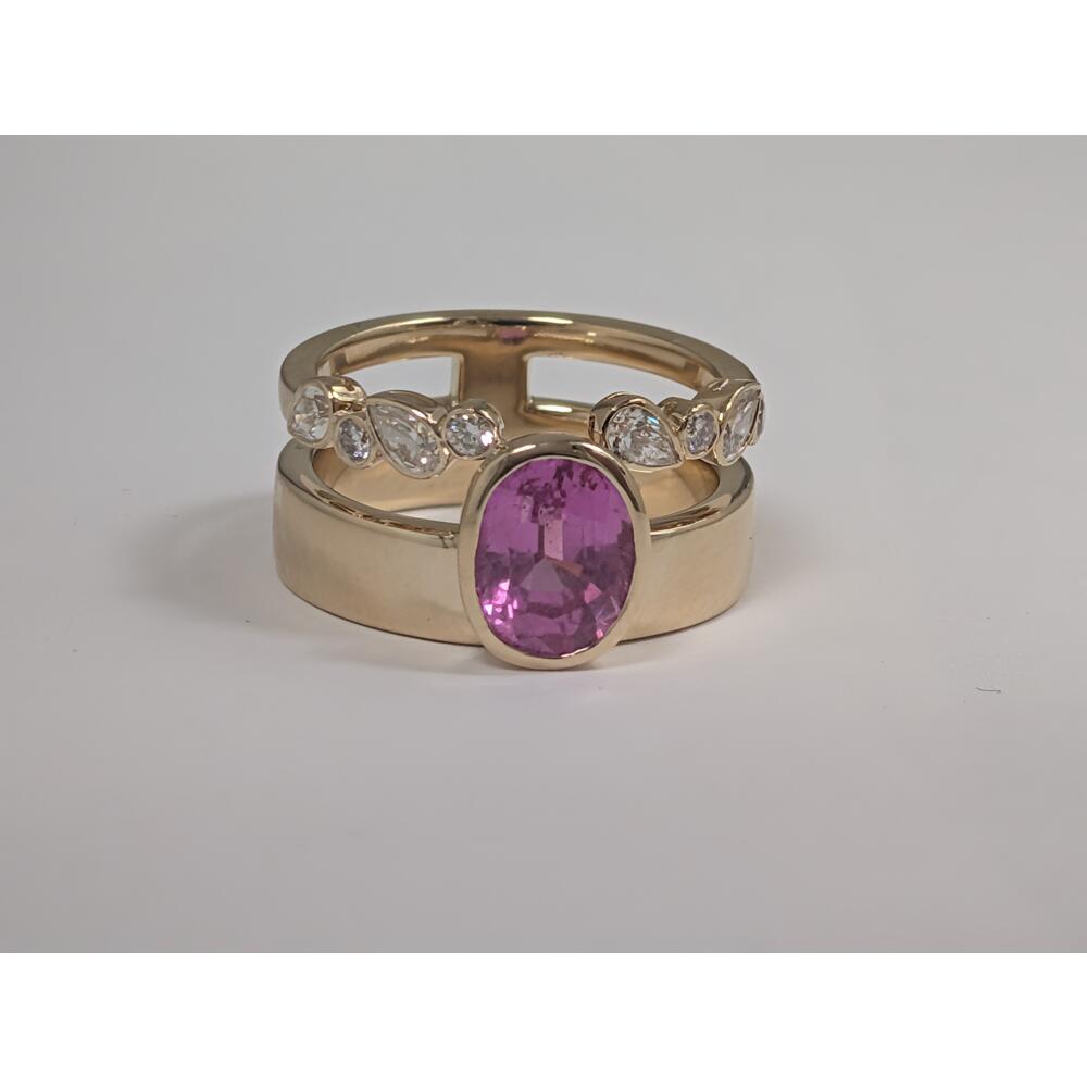 14K Yellow Gold Pink Sapphire/Diamond Ring. Total gem weight: 2.77 ct.