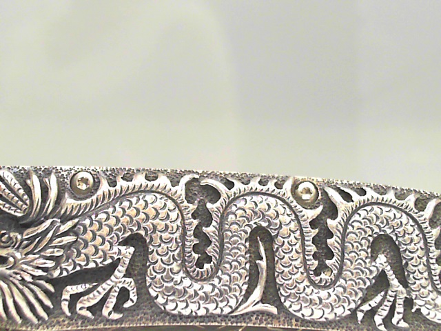 The Gentac ‘Silver Dragon’ features an intricate frame in hand-carved sterling silver by Lee Downey. The blade is hand-forged ‘Intrepid’ damascus by Chad Nichols. The one-hand button lock and the thumb stud are set with lapis lazuli gemstones. An exceptional design that offers rigorous performance in a sleek, comfortable knife, the Gentac is also the perfect canvas to showcase William Henry’s range of exotic materials and techniques. The ‘Silver Dragon’ features some of the unique materials, artistry, and metals that are the hallmark of William Henry’s collections.