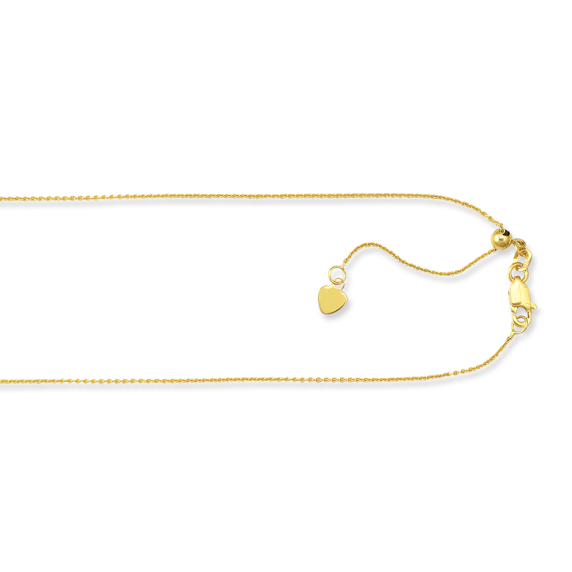 10K Yellow Gold 1.1mm Adjustable (adjusts up to 22 inches) Cable 22″ Chain with Lobster Lock