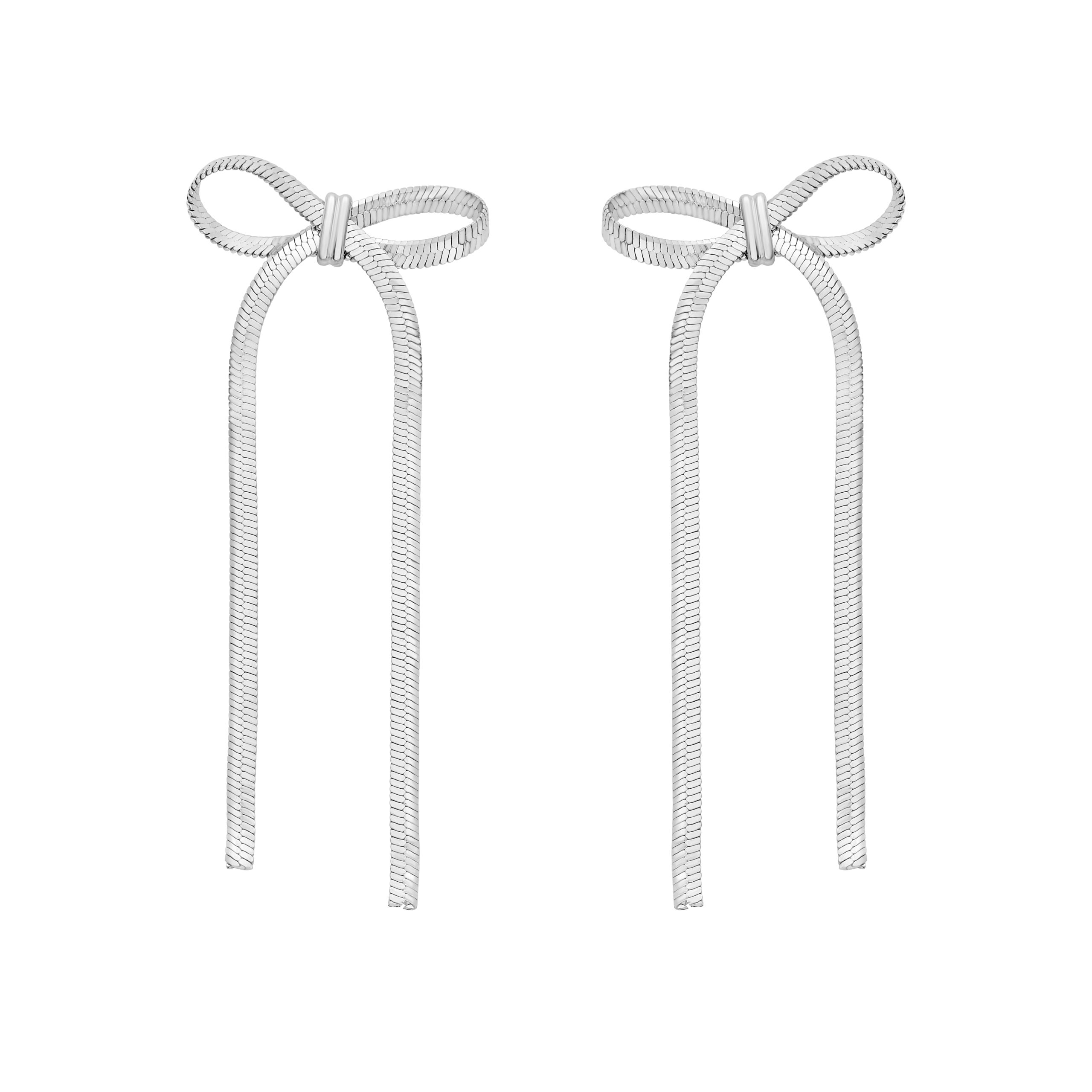 Sterling Silver Polished Snake Chain Drop Dangle Bow Earrings with Push Back Clasp Sterling Silver, Silver, Earring