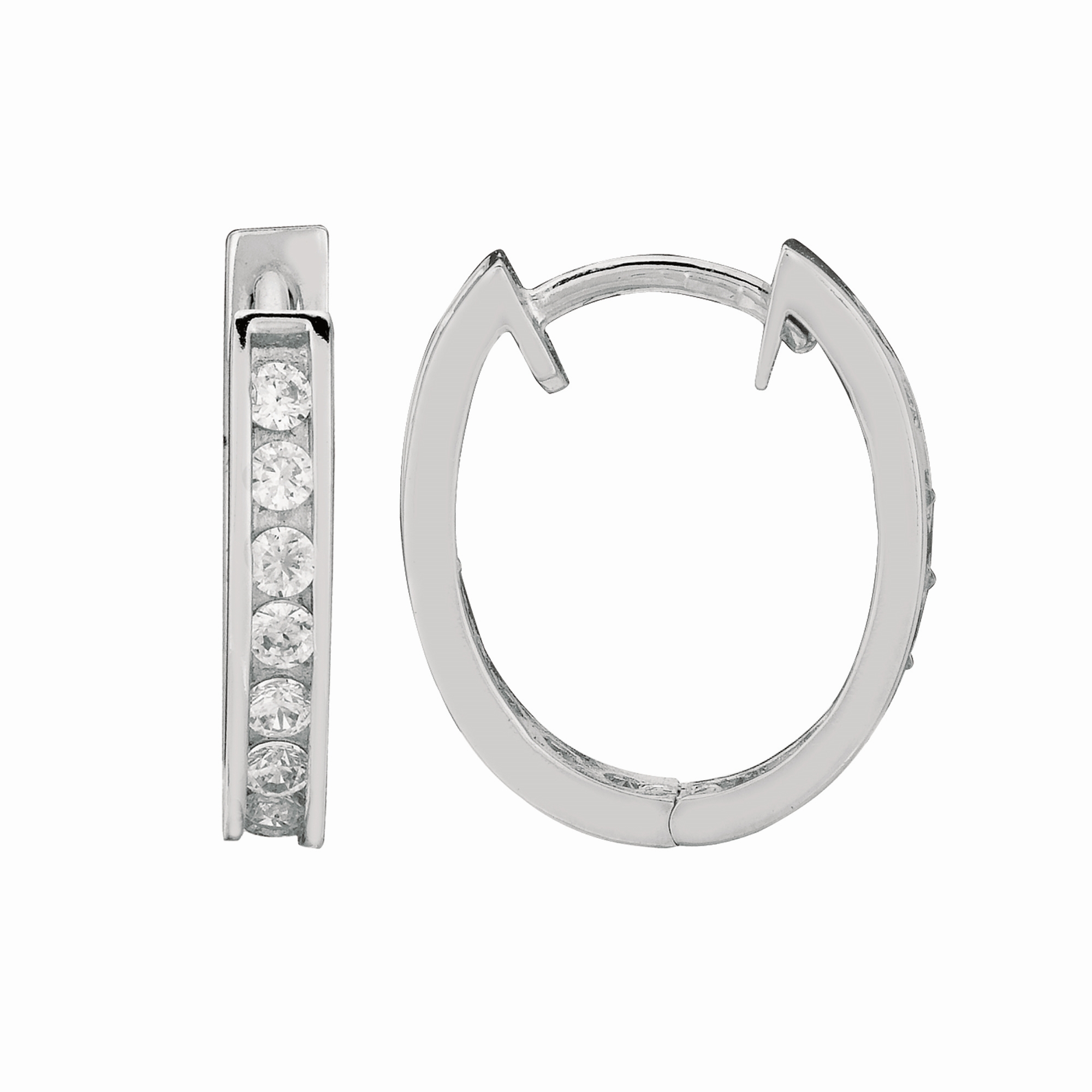 Sterling Silver Oval CZ Hoop Earrings Cubic Zirconia, Sterling Silver, Silver, Earring