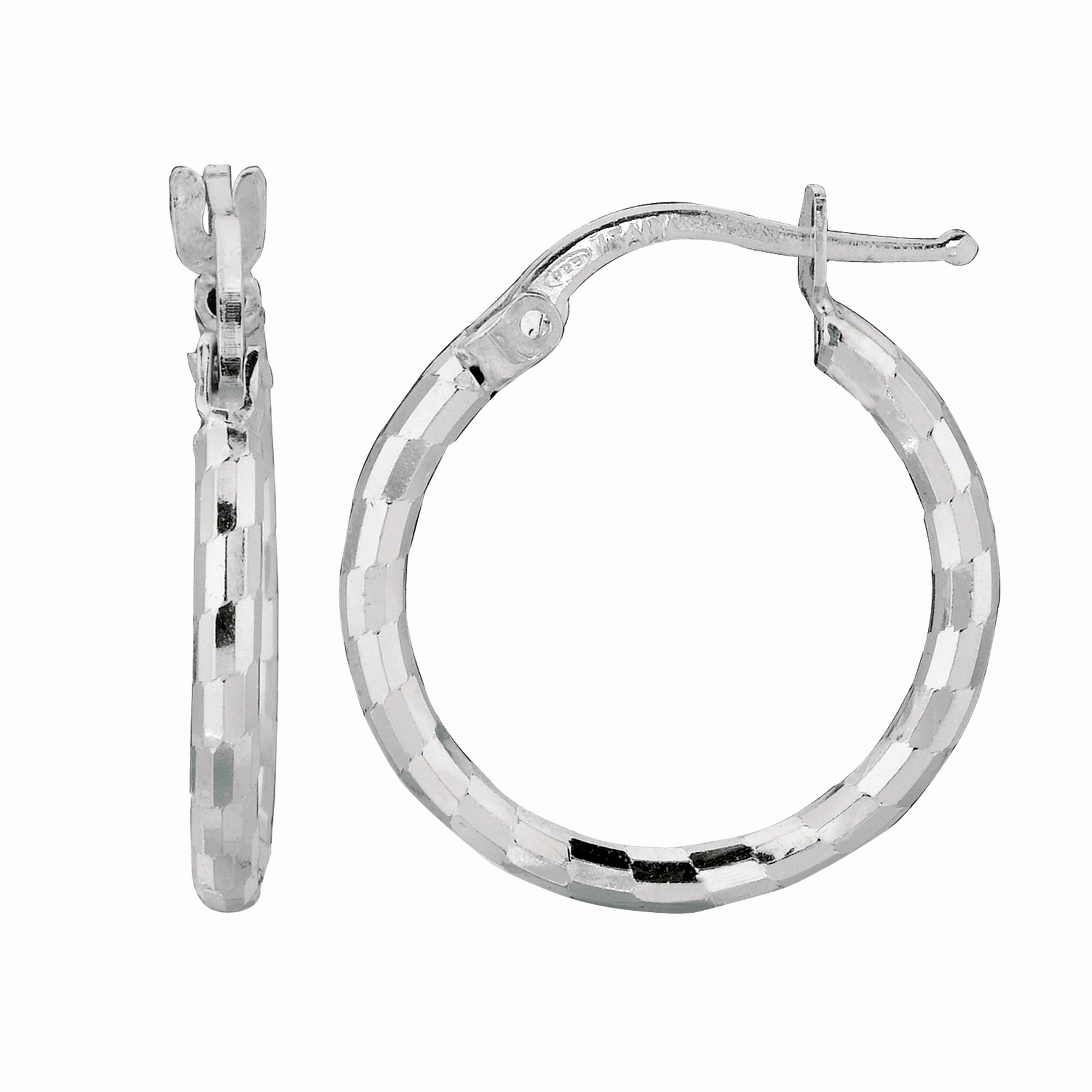 Sterling Silver Diamond Cut Squares Small Hoop Earring Sterling Silver, Silver, Earring