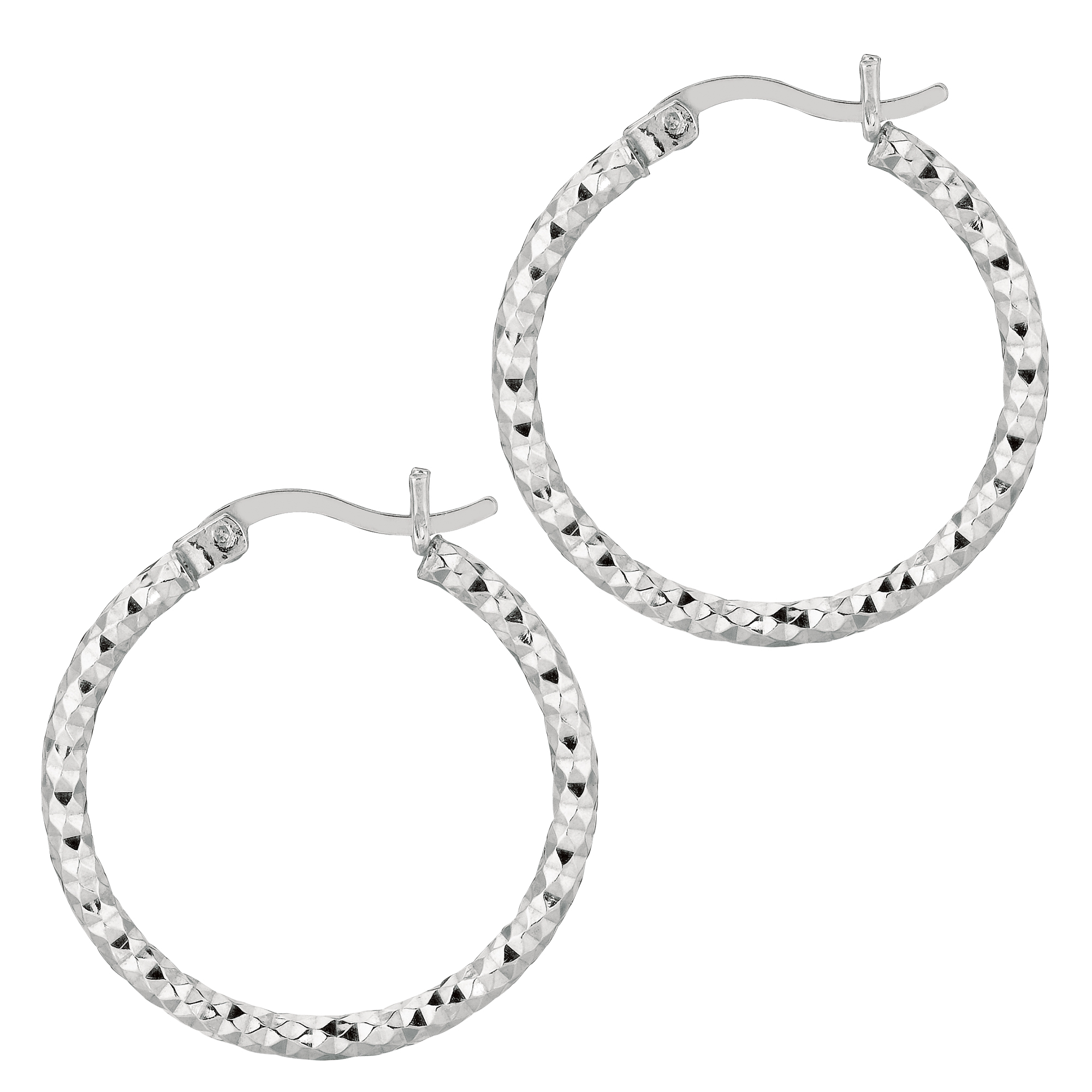 Sterling Silver 2x20MM Diamond Cut Hoop Earring Sterling Silver, Silver, Earring
