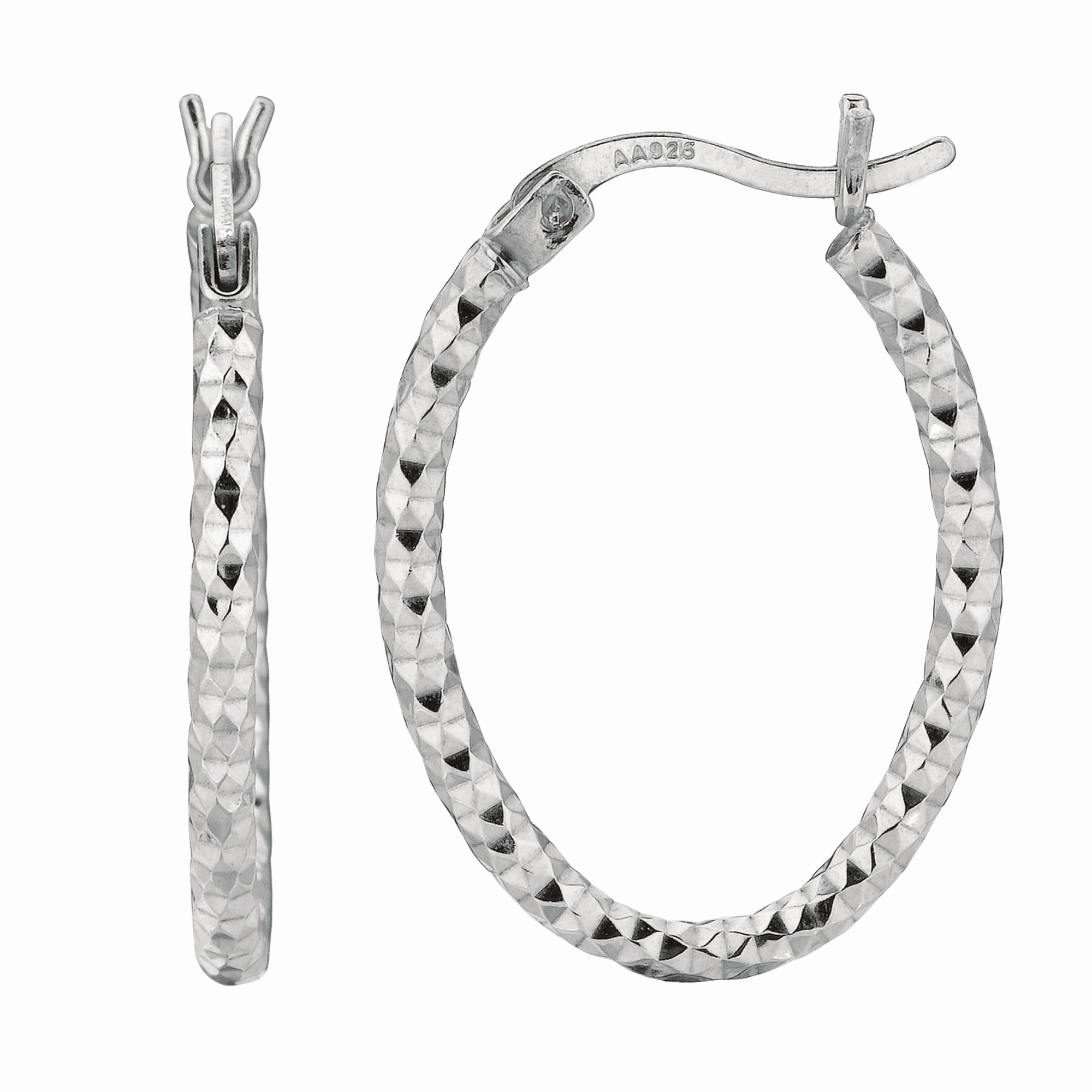 Sterling Silver 2x15MM Diamond Cut Oval Hoop Earring Sterling Silver, Silver, Earring