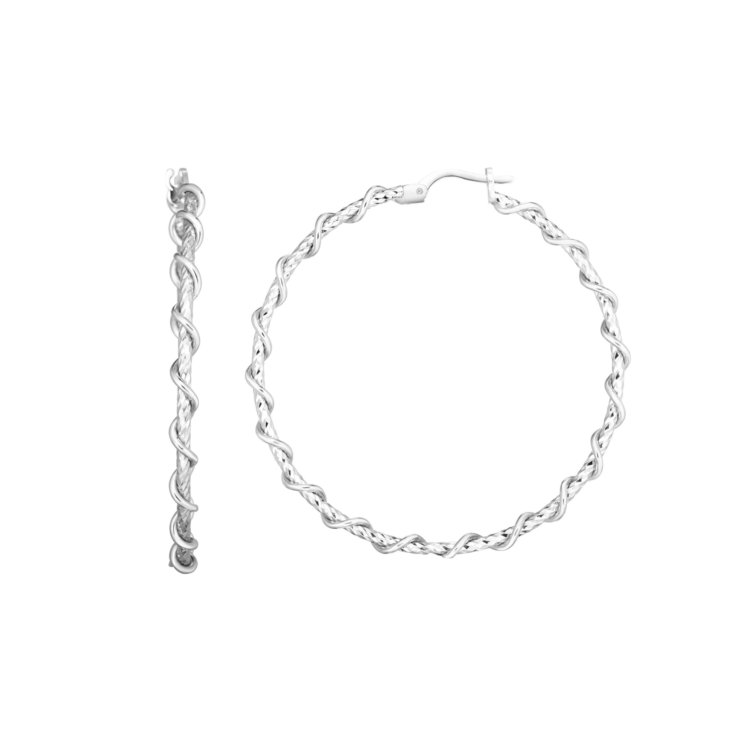 Sterling Silver 45mm Wire Twist Diamond Cut Hoop Earring Sterling Silver, Silver, Earring