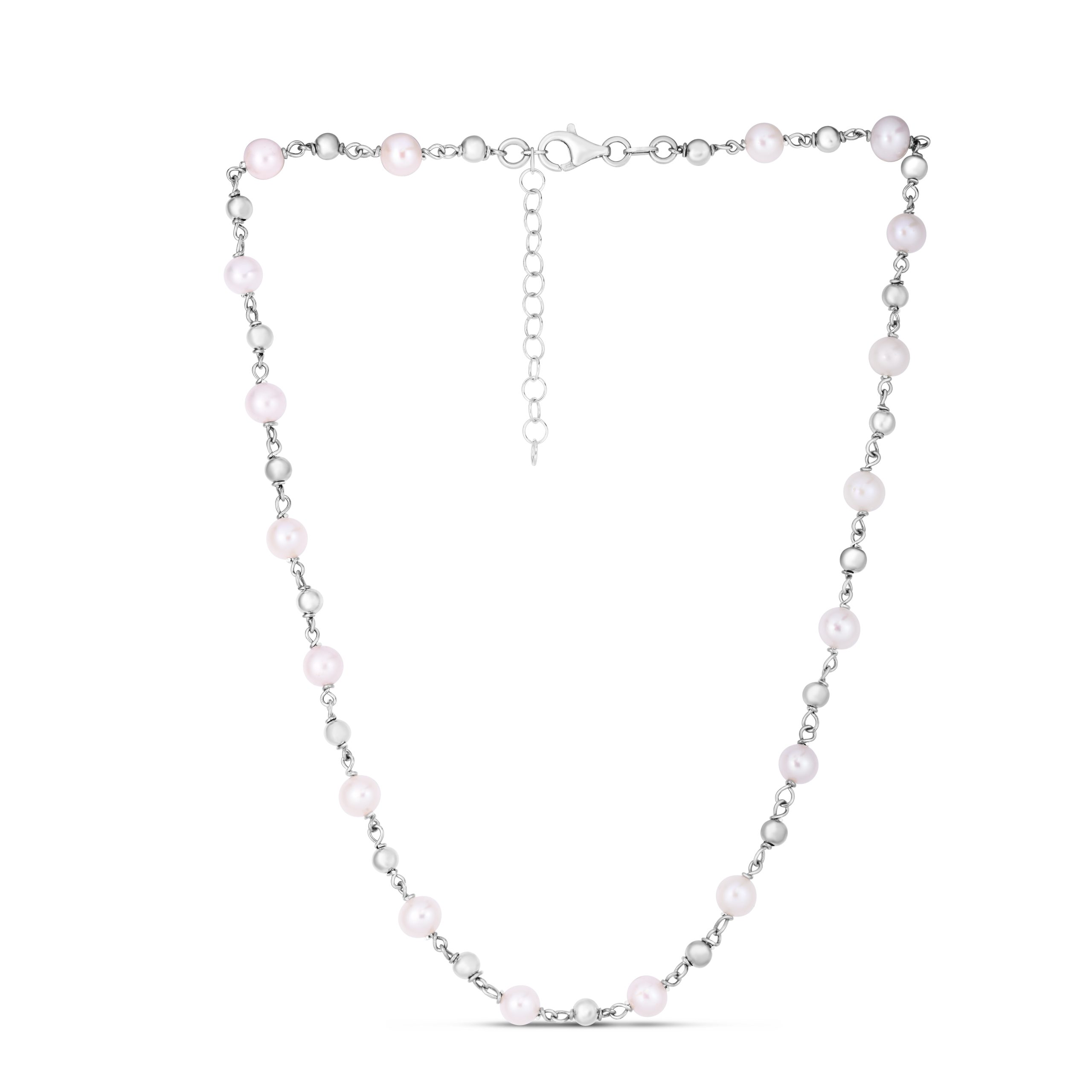 Sterling Silver Alternating Freshwater Pearl & Bead 8″ Chain Bracelet with Lobster Clasp. Includes 1″ extender. Item is rhodium plated. Freshwater Pearl, Sterling Silver, Silver, Necklace