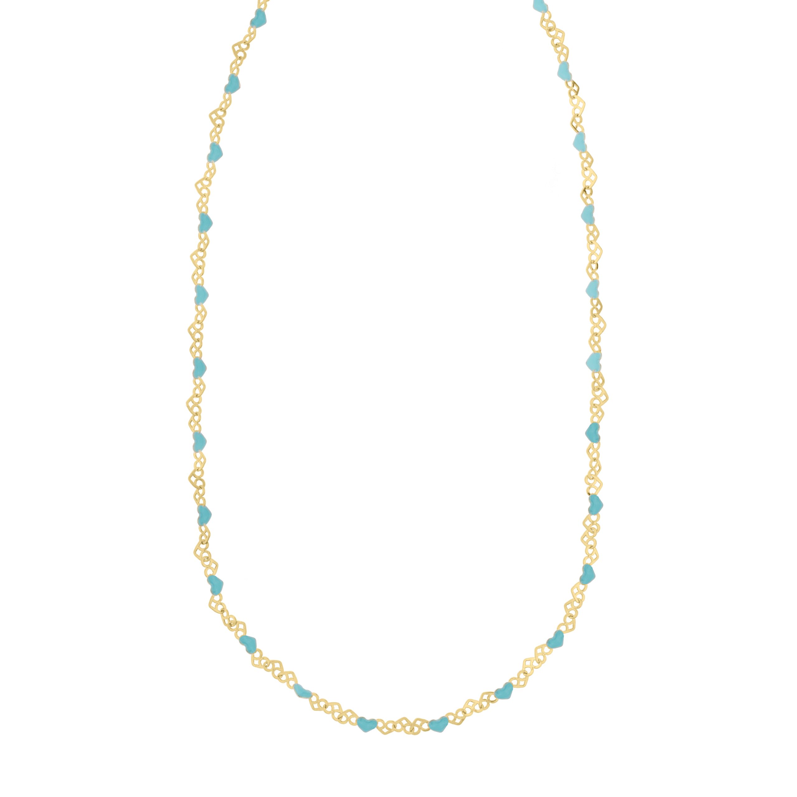 Sterling Silver (Yellow Gold Plated) 18″ Blue Enamel Hearts Chain Necklace with Lobster Clasp
