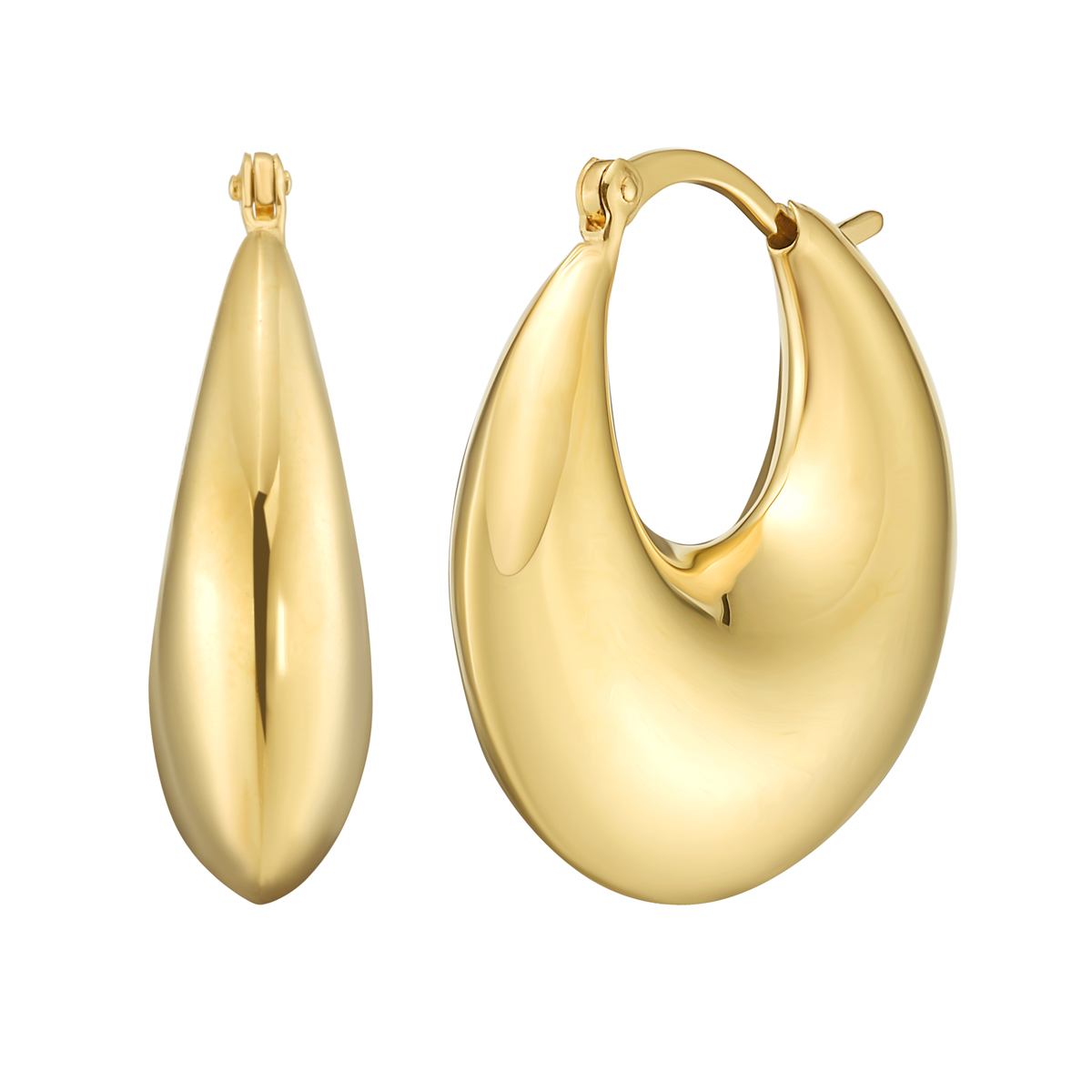 Sterling Silver (Yellow Gold Plated) Sculptural Crescent Hoop Earrings with Hinged Clasp