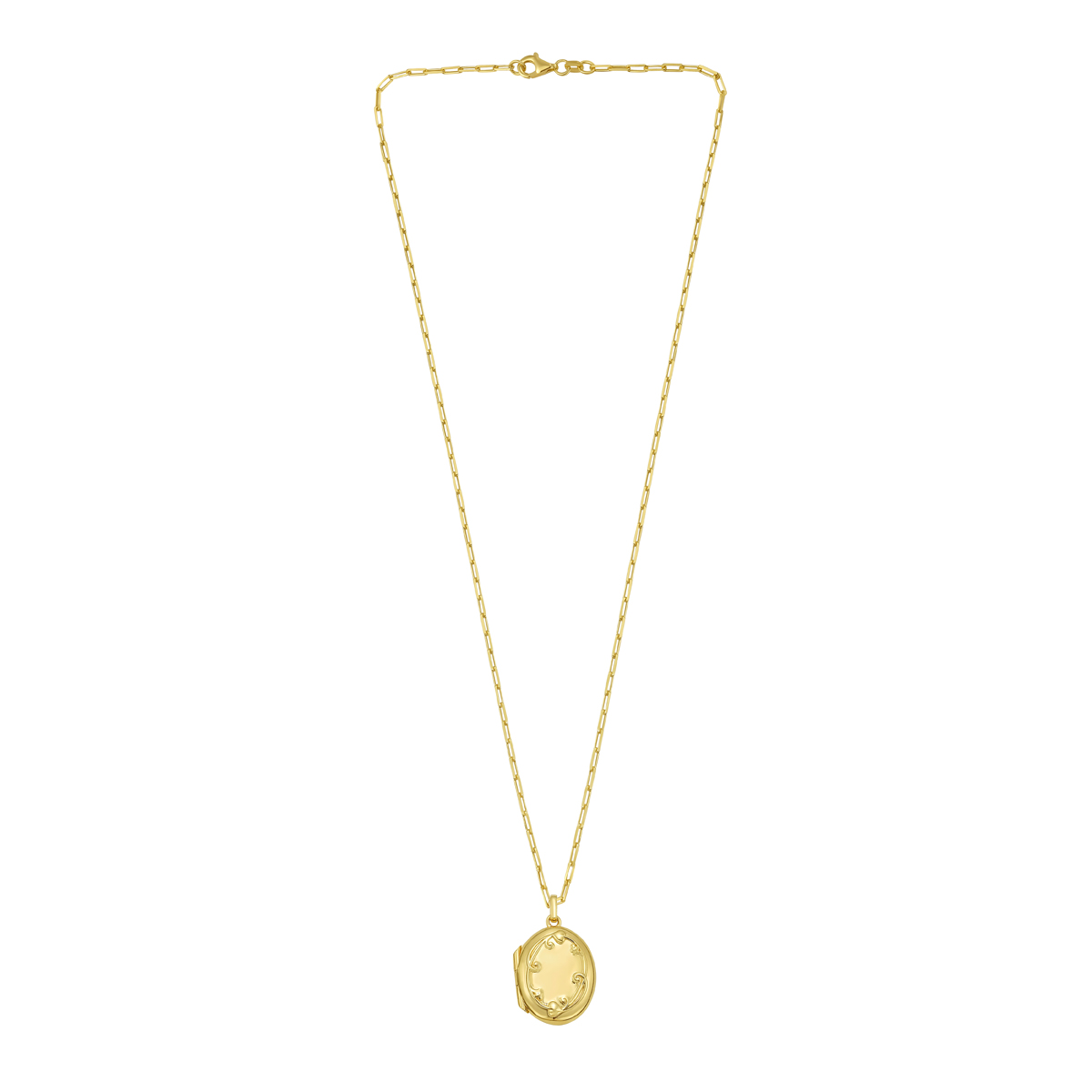 Sterling Silver (Gold Plated) 18″ Heart with Vine Details Locket Pedant on Paperclip Chain with Lobster Clasp