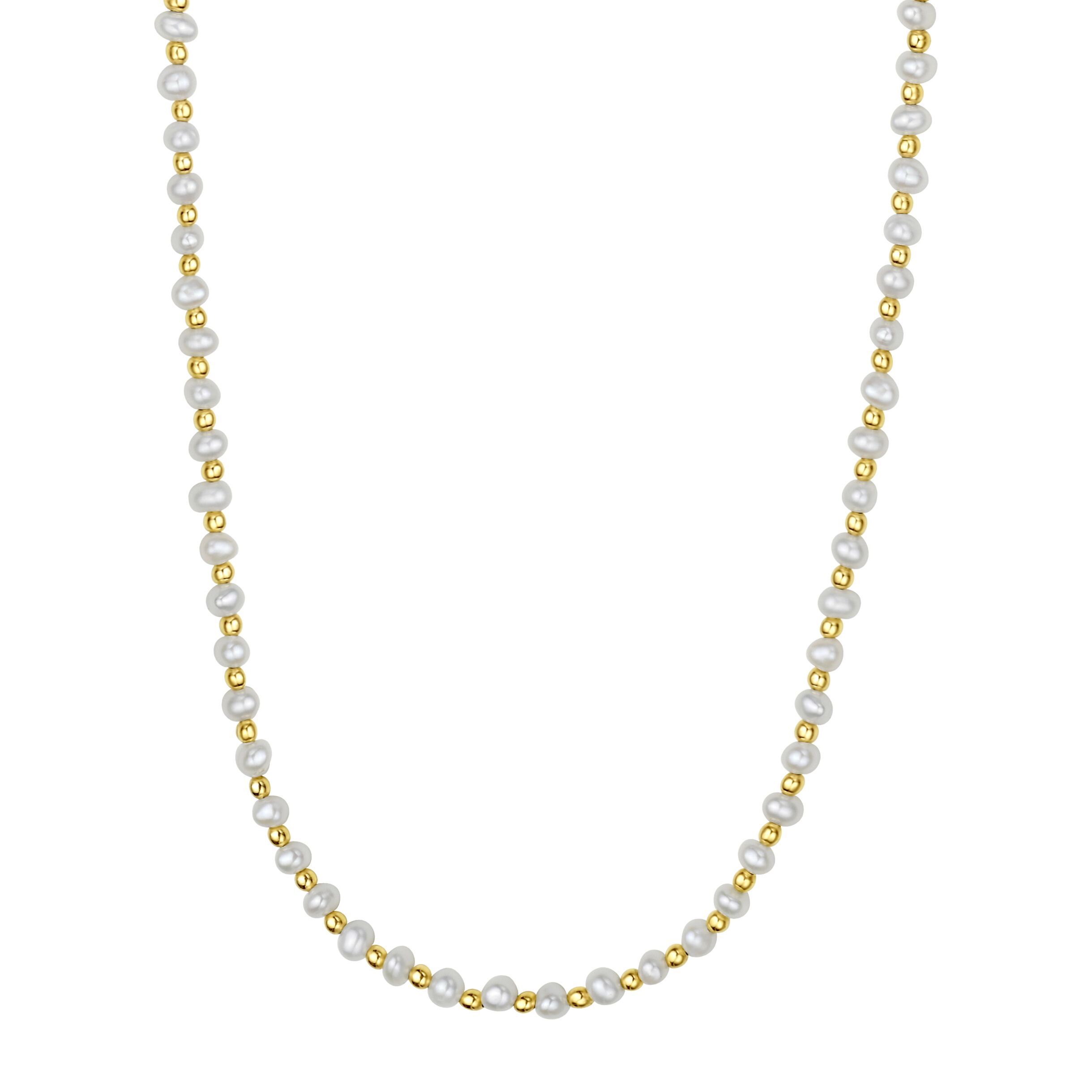 14K Yellow Gold & Pearl Bead 18″ Necklace with Pear Shaped Lobster Clasp Freshwater Pearl