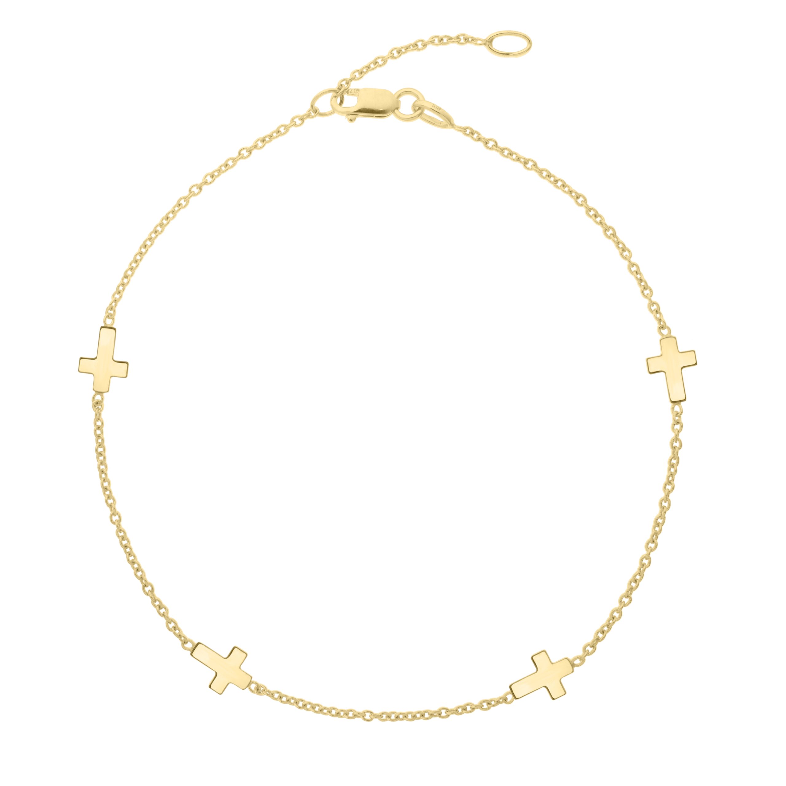 10K Yellow Gold Polished Sideways Cross 10″ Anklet with Lobster Clasp. Jump ring at 9″