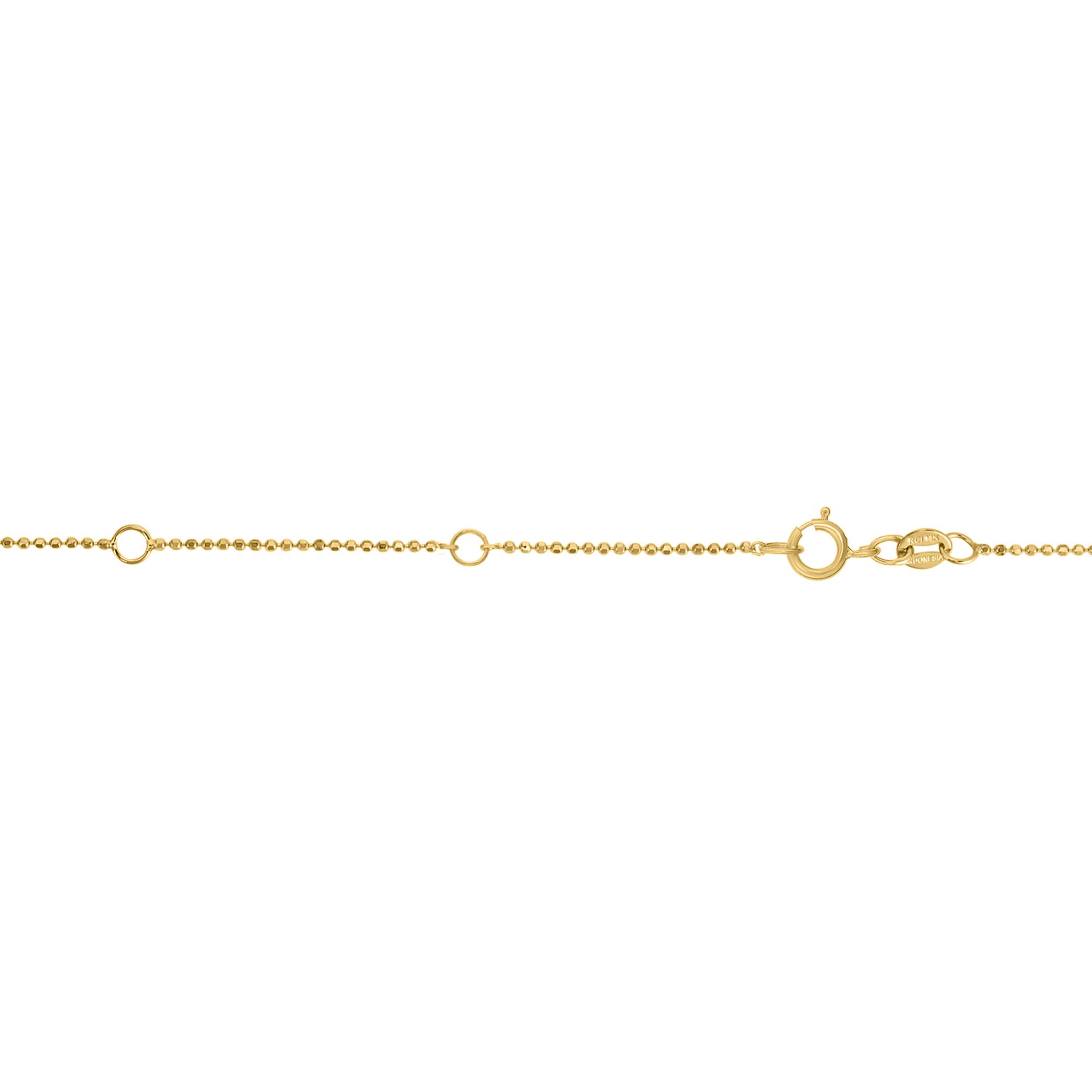10K Yellow Gold .9mm Diamond Cut Double Extendable Bead Chain with Spring Ring Clasp. Total length 18″ with jump ring at 16″ and 17″.