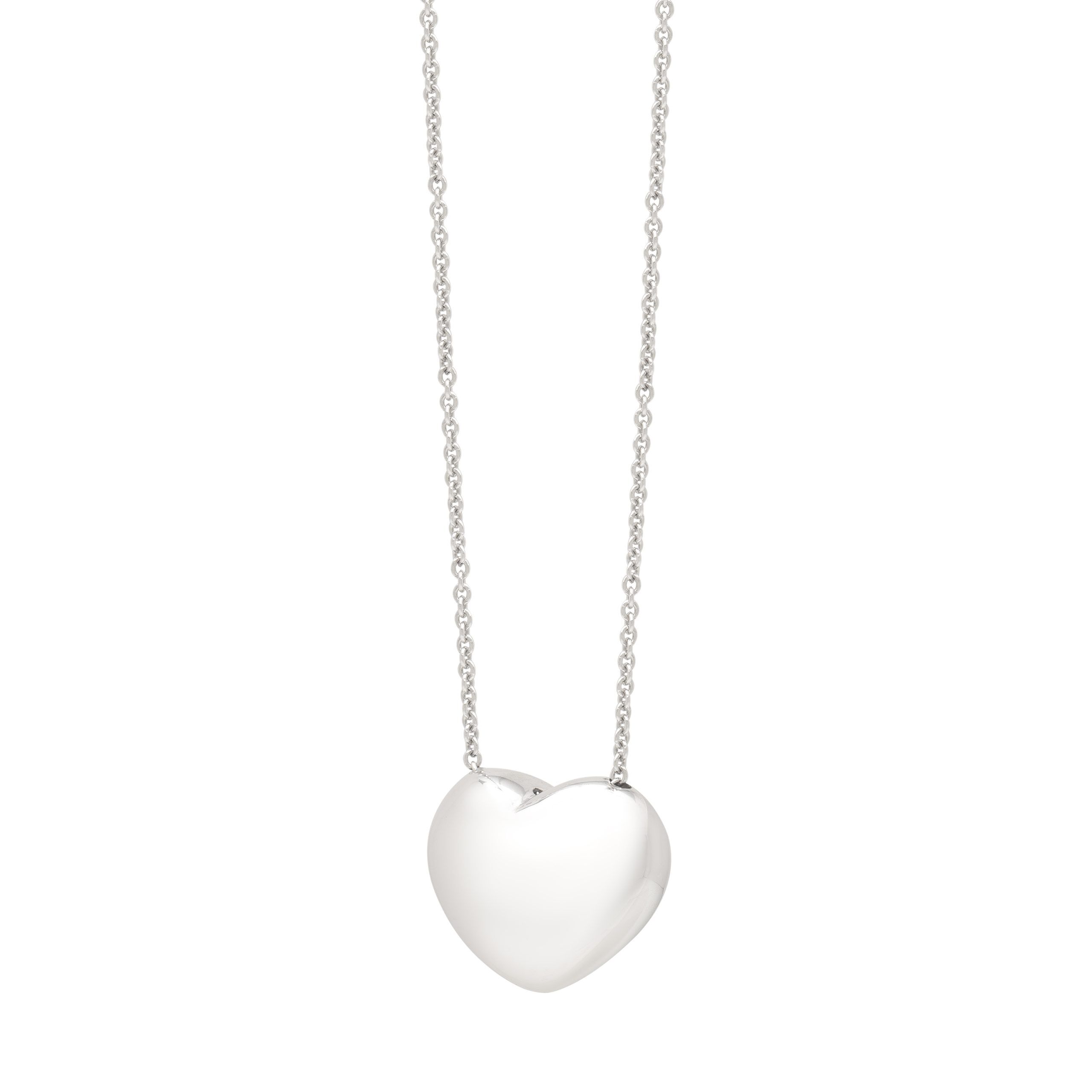 Sterling Silver Polished Puffy Heart 18″ Necklace with Pear Shaped Lobster Clasp