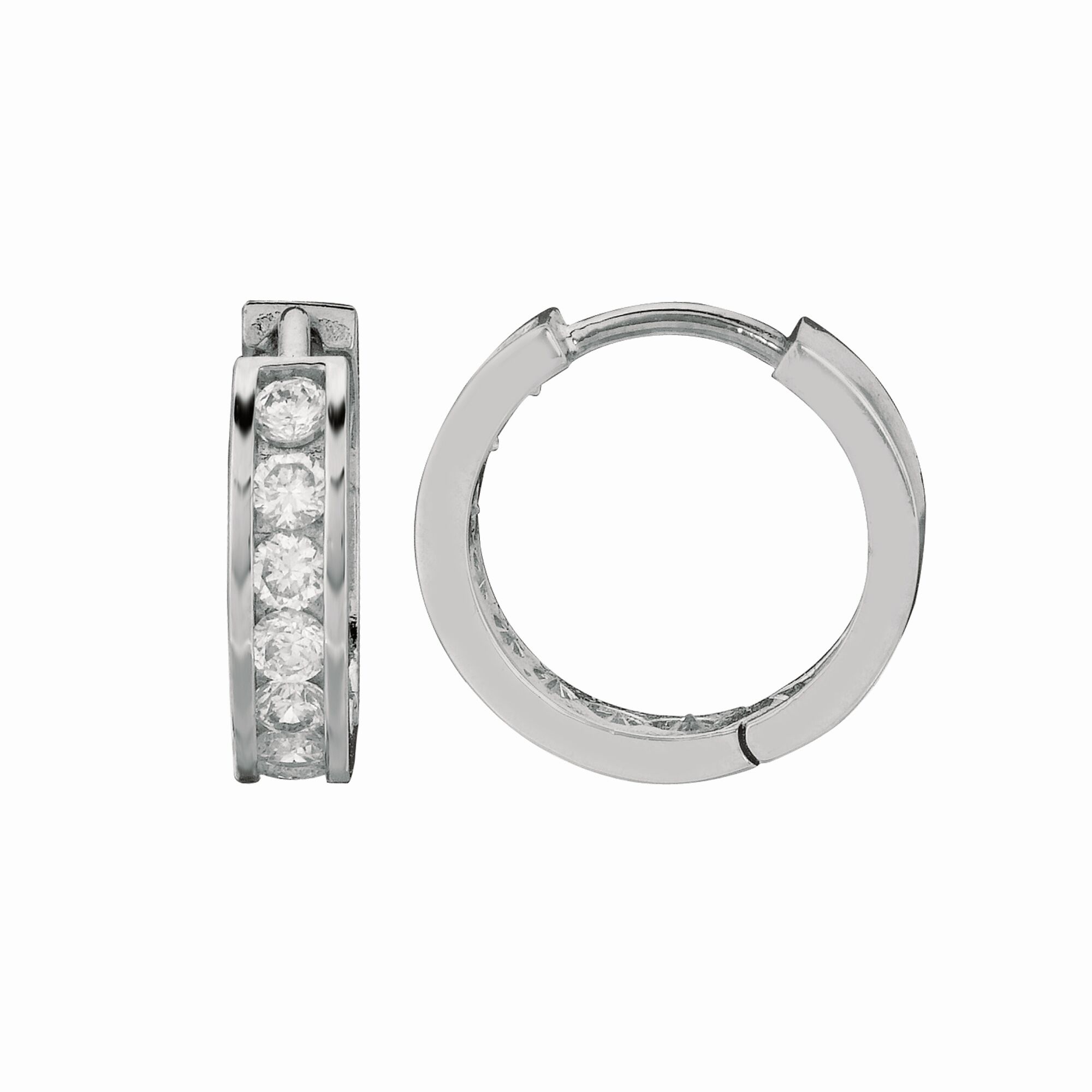Sterling Silver Channel Set 3x15mm CZ Hoop Earrings Cubic Zirconia