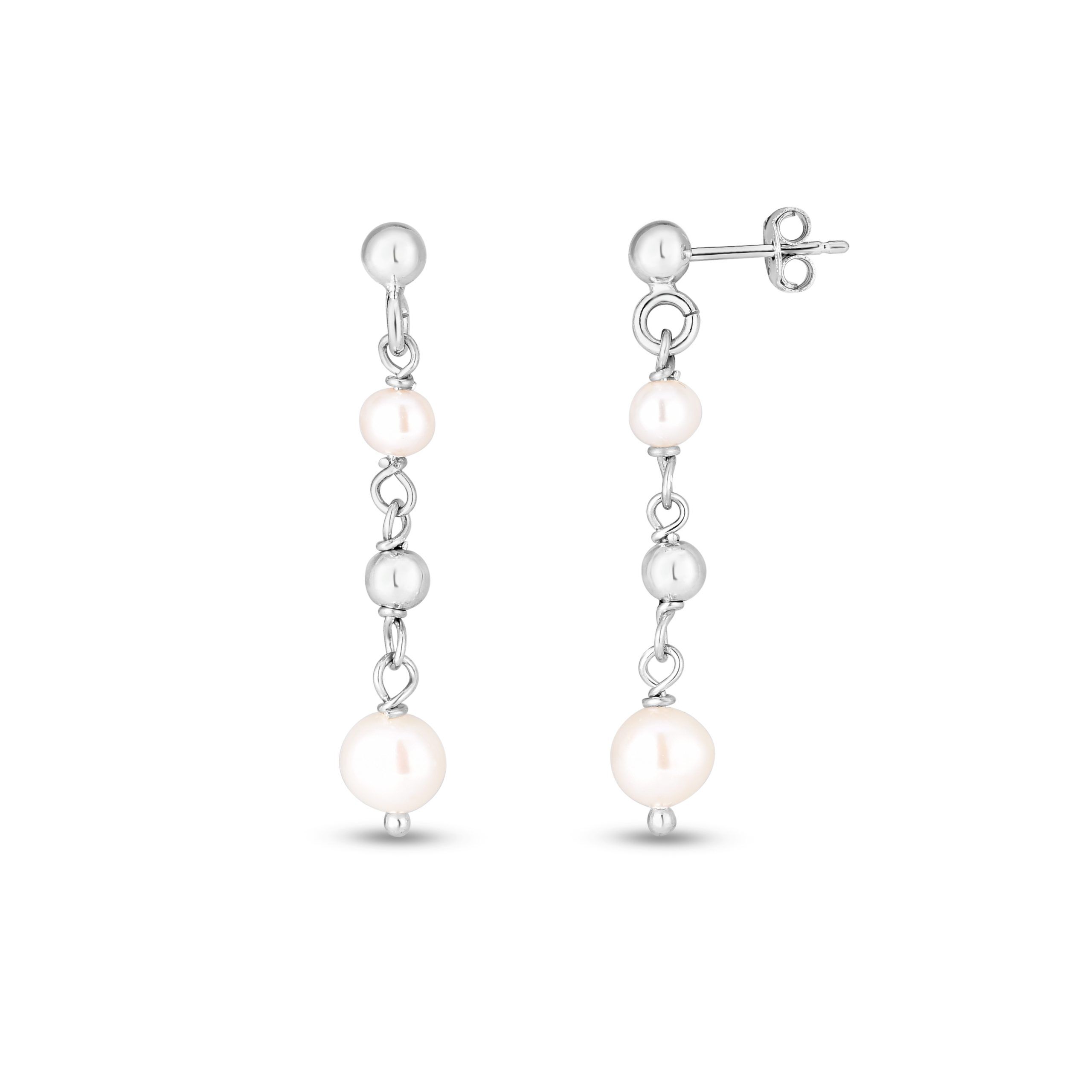 Sterling Silver Polished Freshwater Pearl Bead Drop Earrings with Push back Clasp Freshwater Pearl
