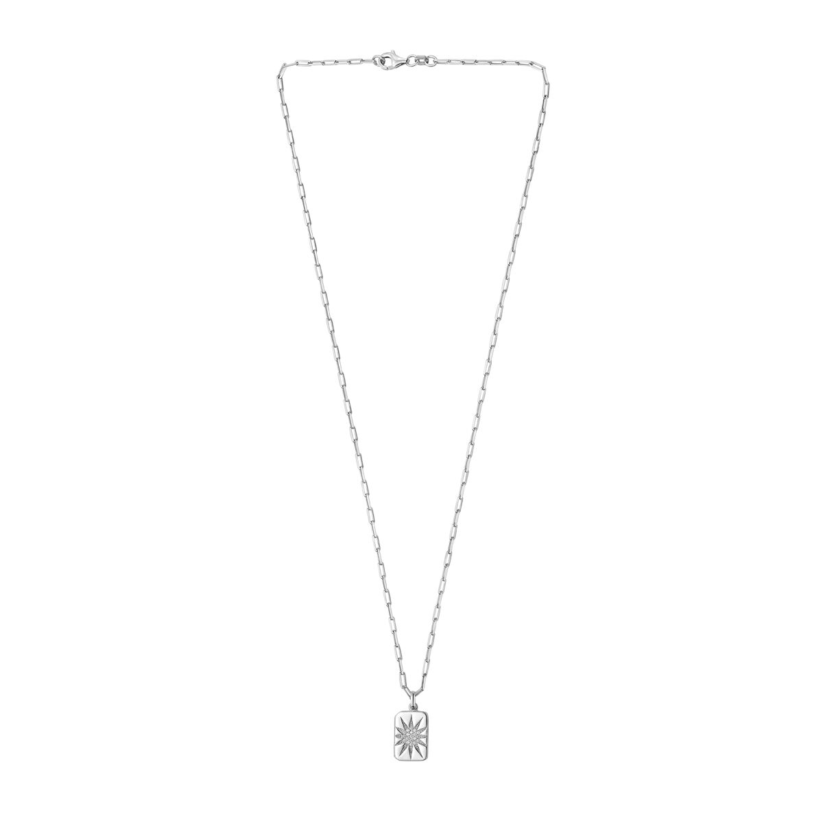 Sterling Silver 18″ Cubic Zirconia Starburst Locket Pendant on Paperclip Chain with Lobster Clasp Cubic Zirconia