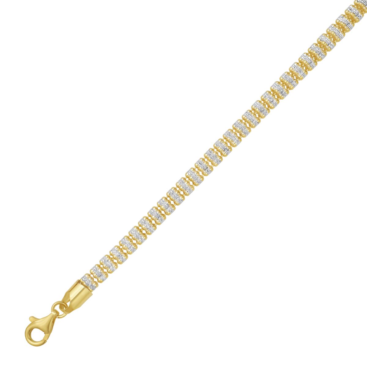 Silver with Gold Plating 8.5″ Fancy Ice Chain with Pear Shaped Lobster Clasp