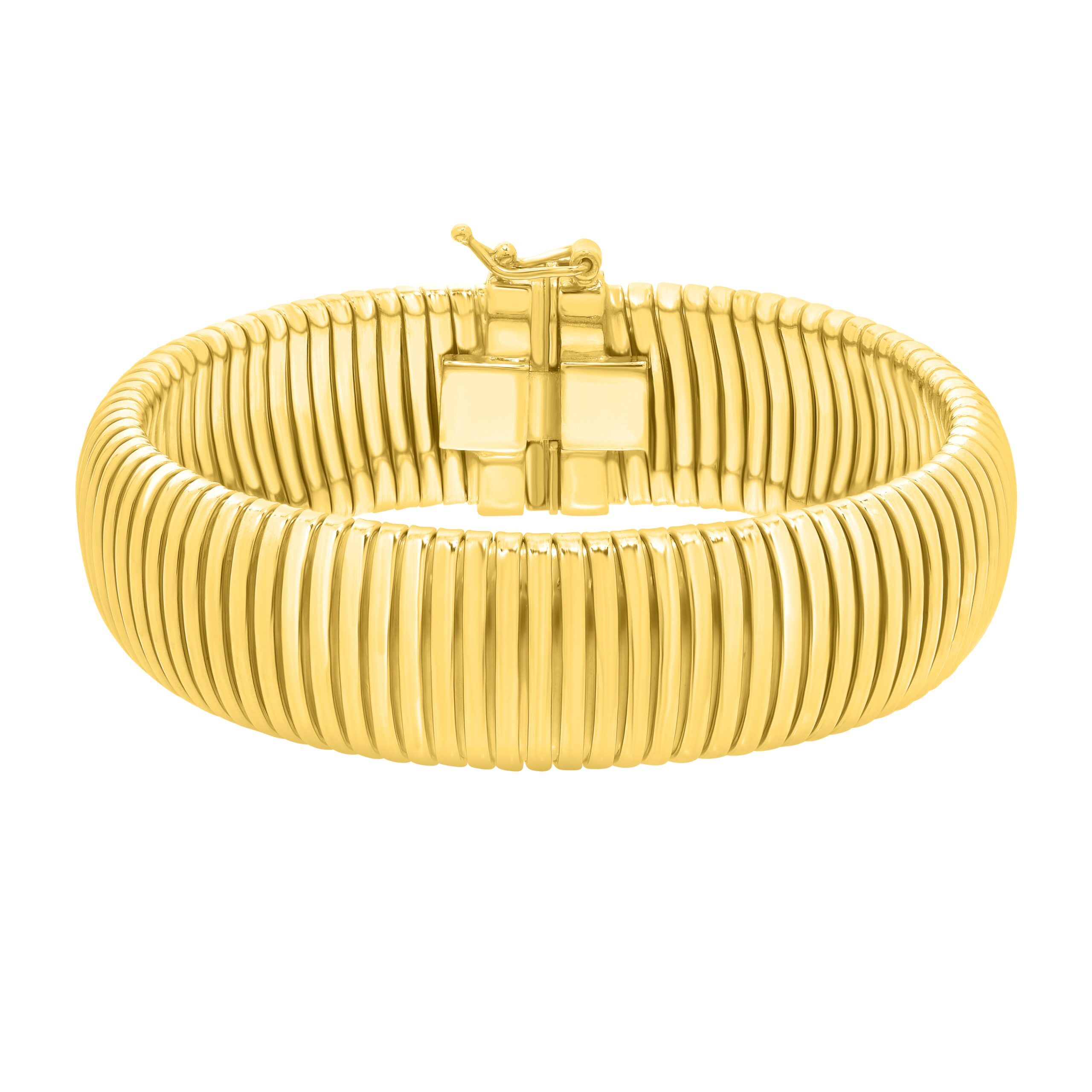 Sterling Silver (Yellow Gold Plated) Polished 7.25″ 16mm Thick Tubogas Bracelet with Box Clasp.