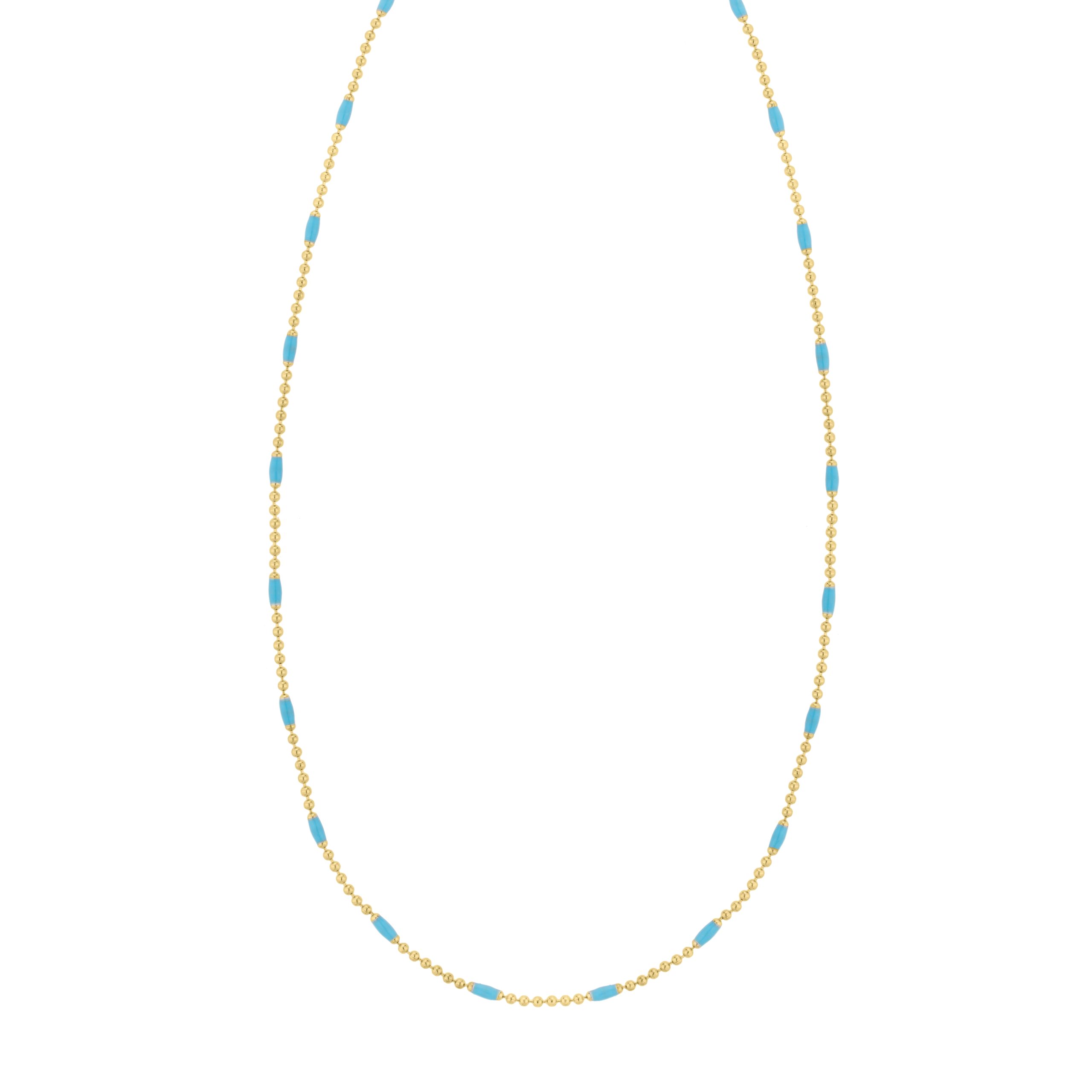 Sterling Silver (Yellow Gold Plated) 18″ Blue Enamel Beaded Chain Necklace with Lobster Clasp