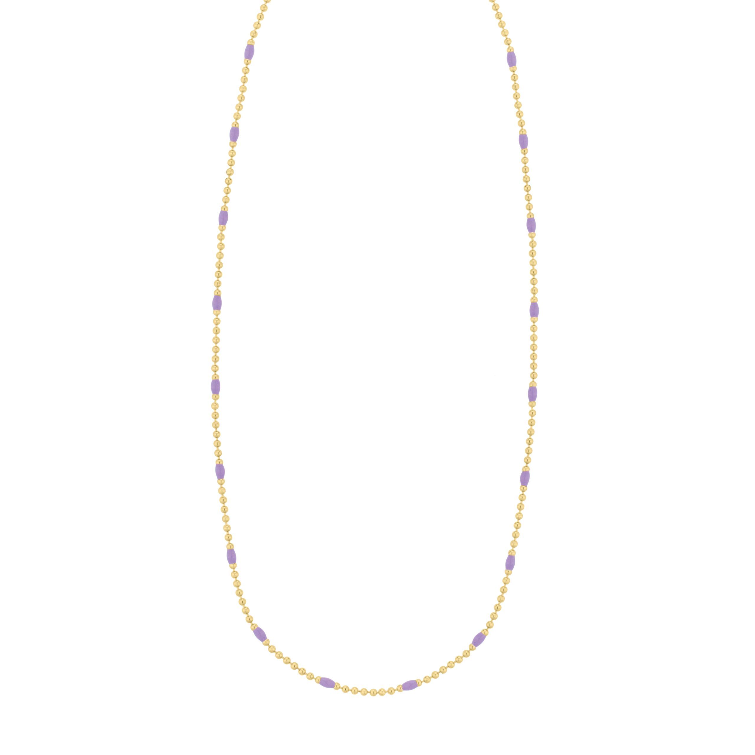 Sterling Silver (Yellow Gold Plated) 18″ Purple Enamel Beaded Chain Necklace with Lobster Clasp