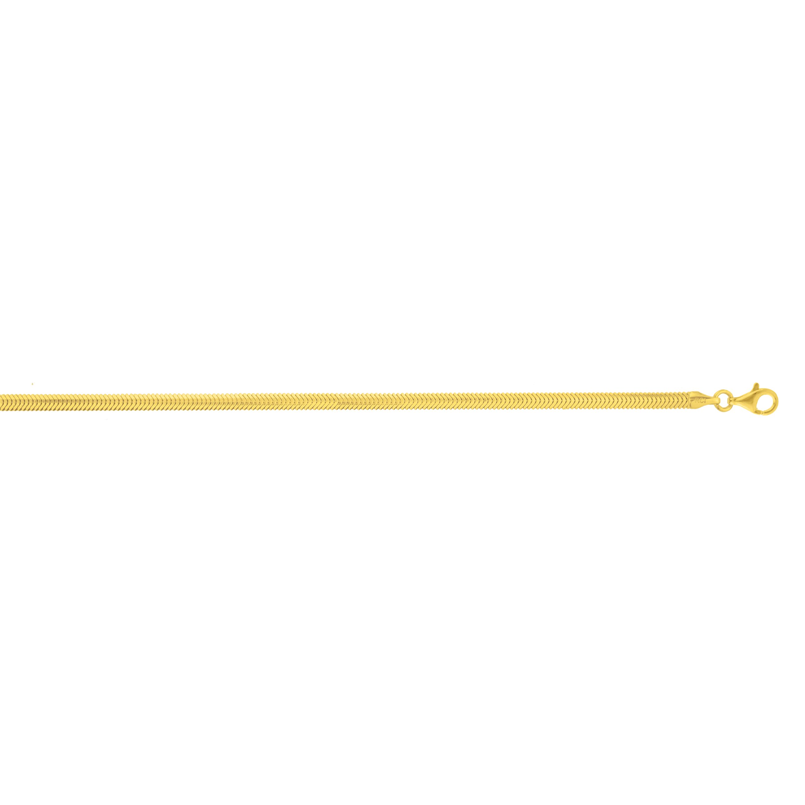 Sterling Silver (Yellow Gold Plated) 16″ 3.3mm Oval Snake Chain Necklace with Lobster Clasp.