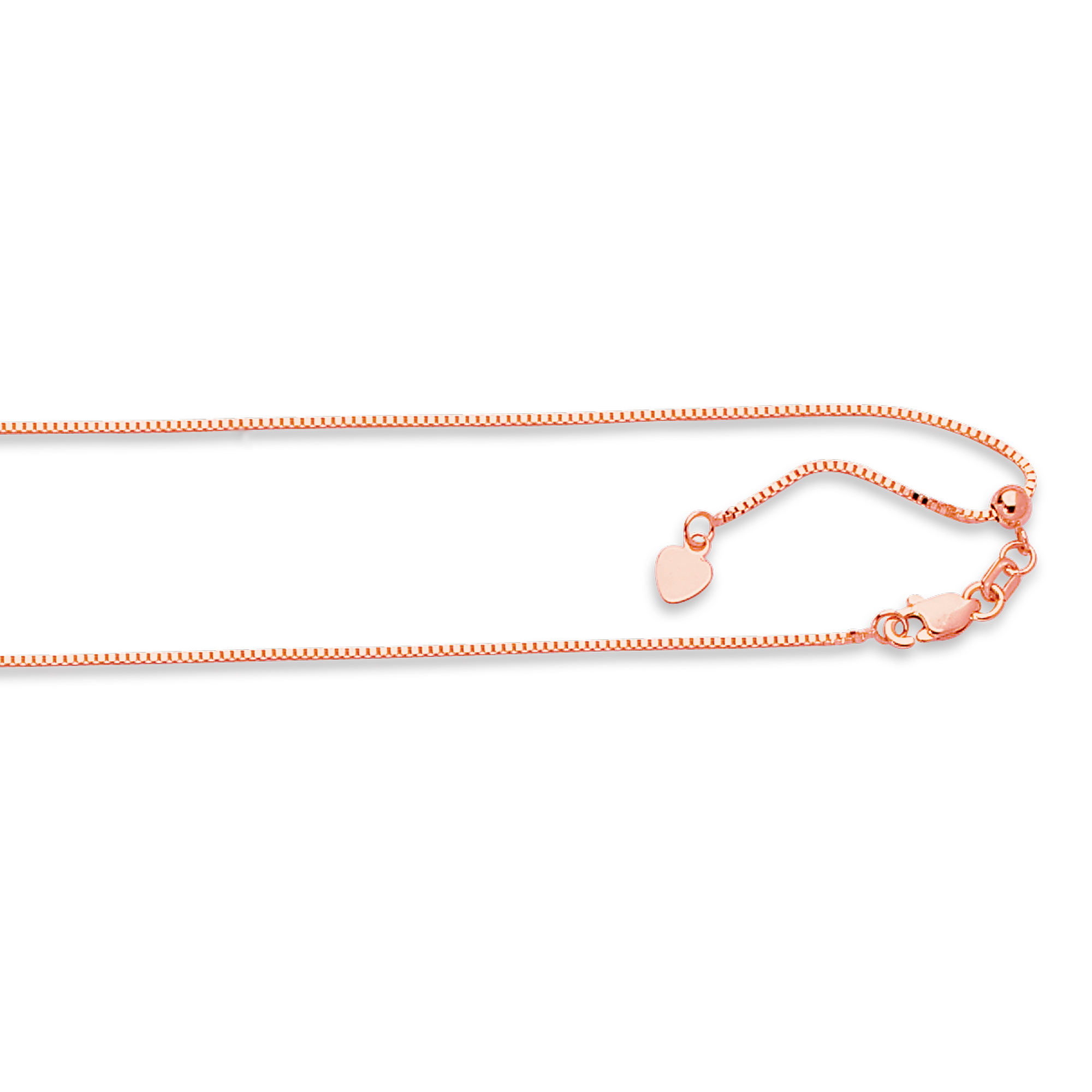 14K Rose Gold 0.85mm Adjustable Box 22″ Chain with Lobster Lock
