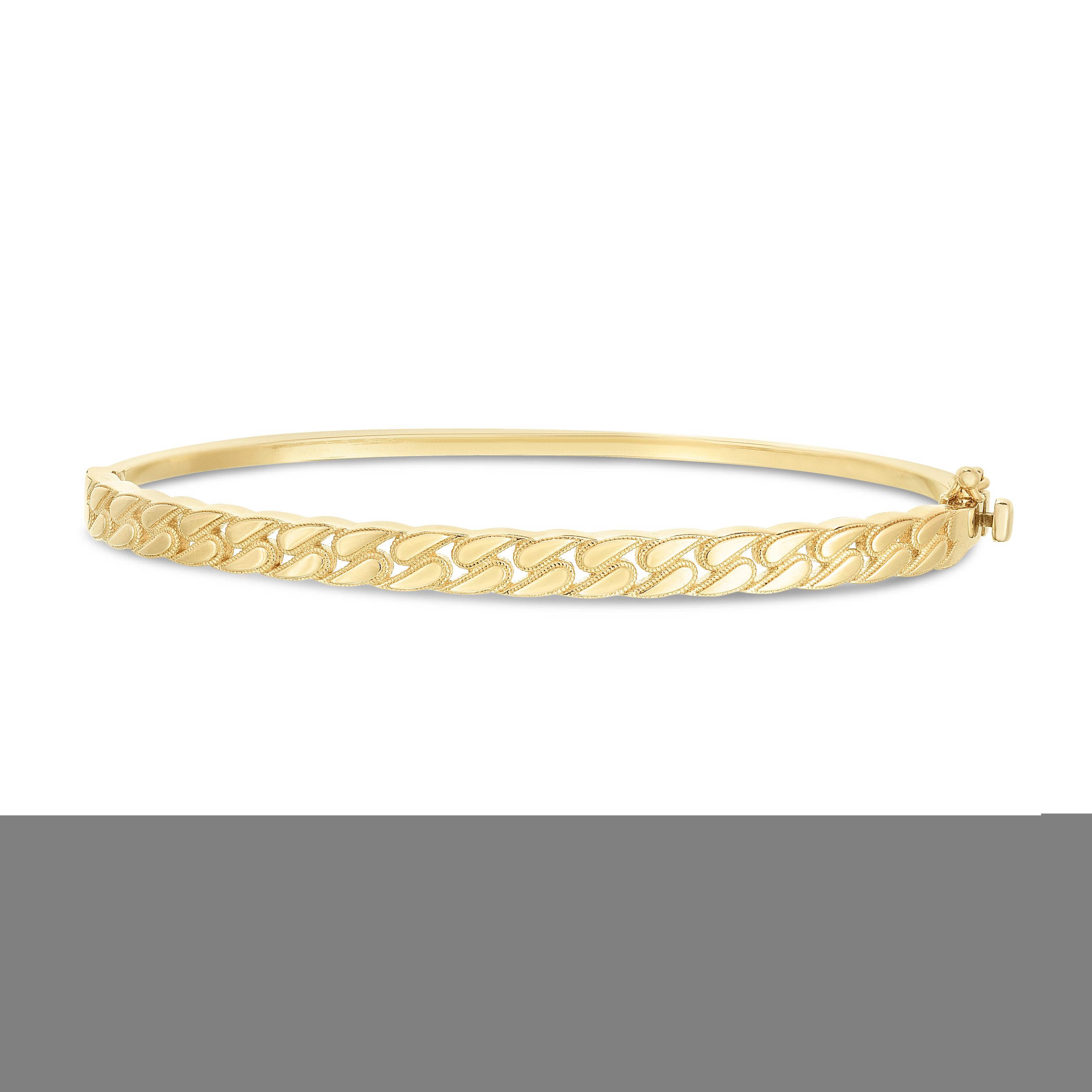 14K Yellow Gold Polished Cuban Chain 7″ Bangle with Box Clasp