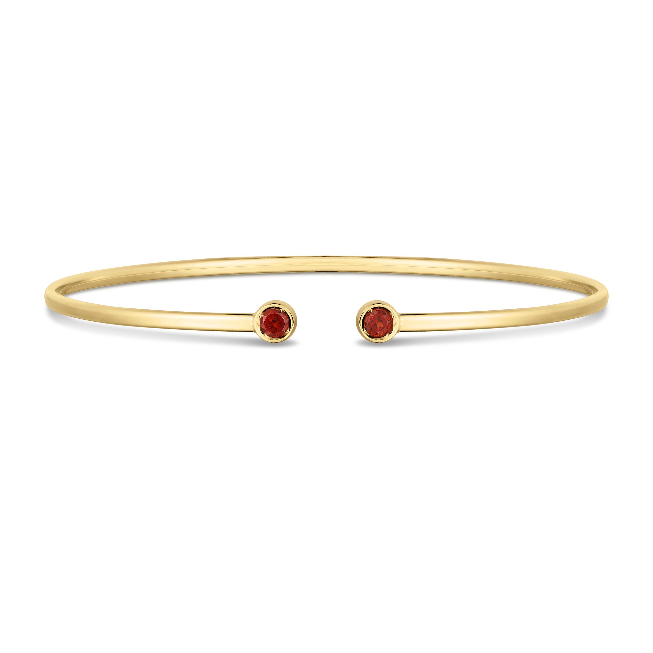 14K Yellow Gold 3mm Round Garnet Open Cuff Bangle GARNET