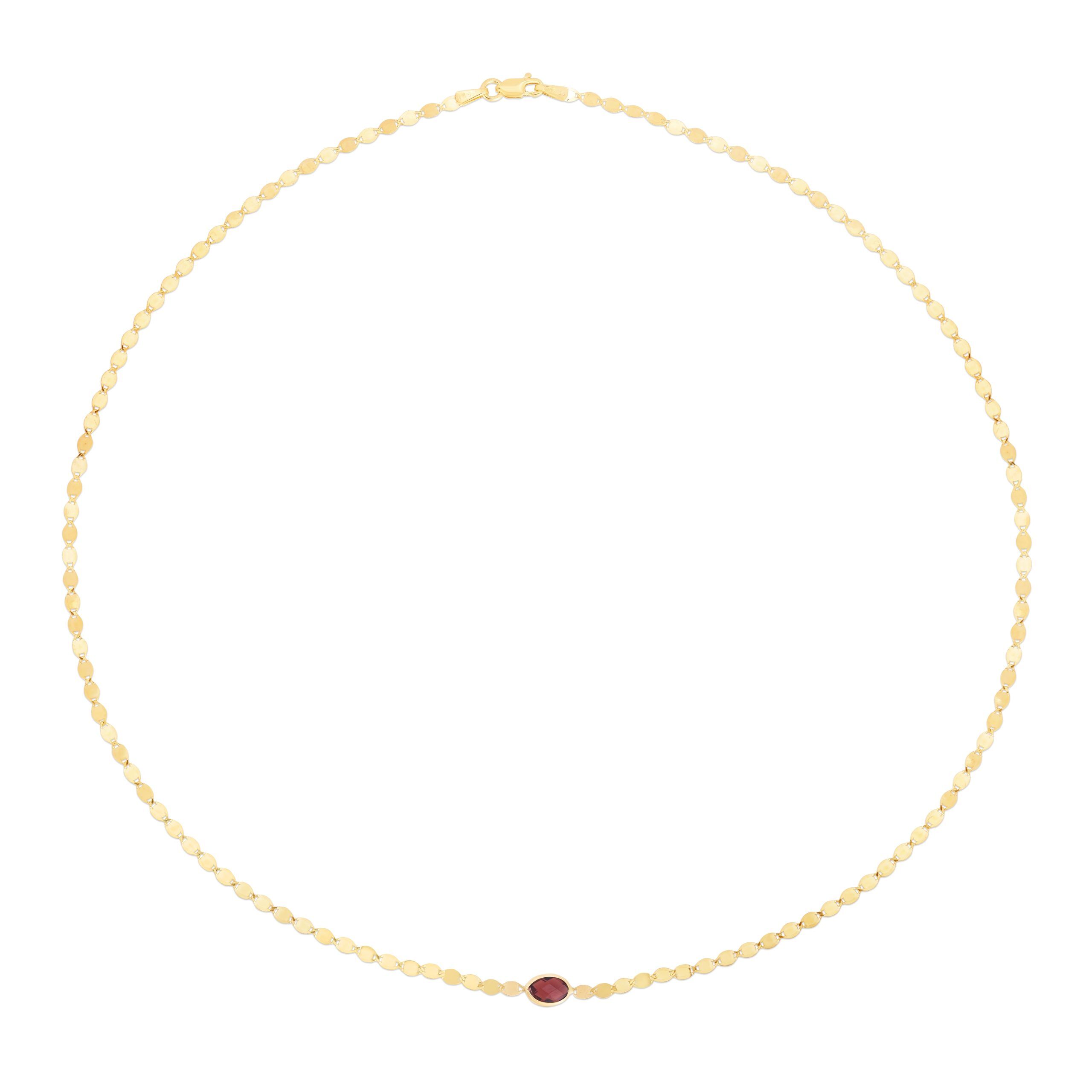 14K Yellow Gold 6×4 Oval Garnet 16″ Mirrored Chain Necklace with Lobster Clasp. GARNET