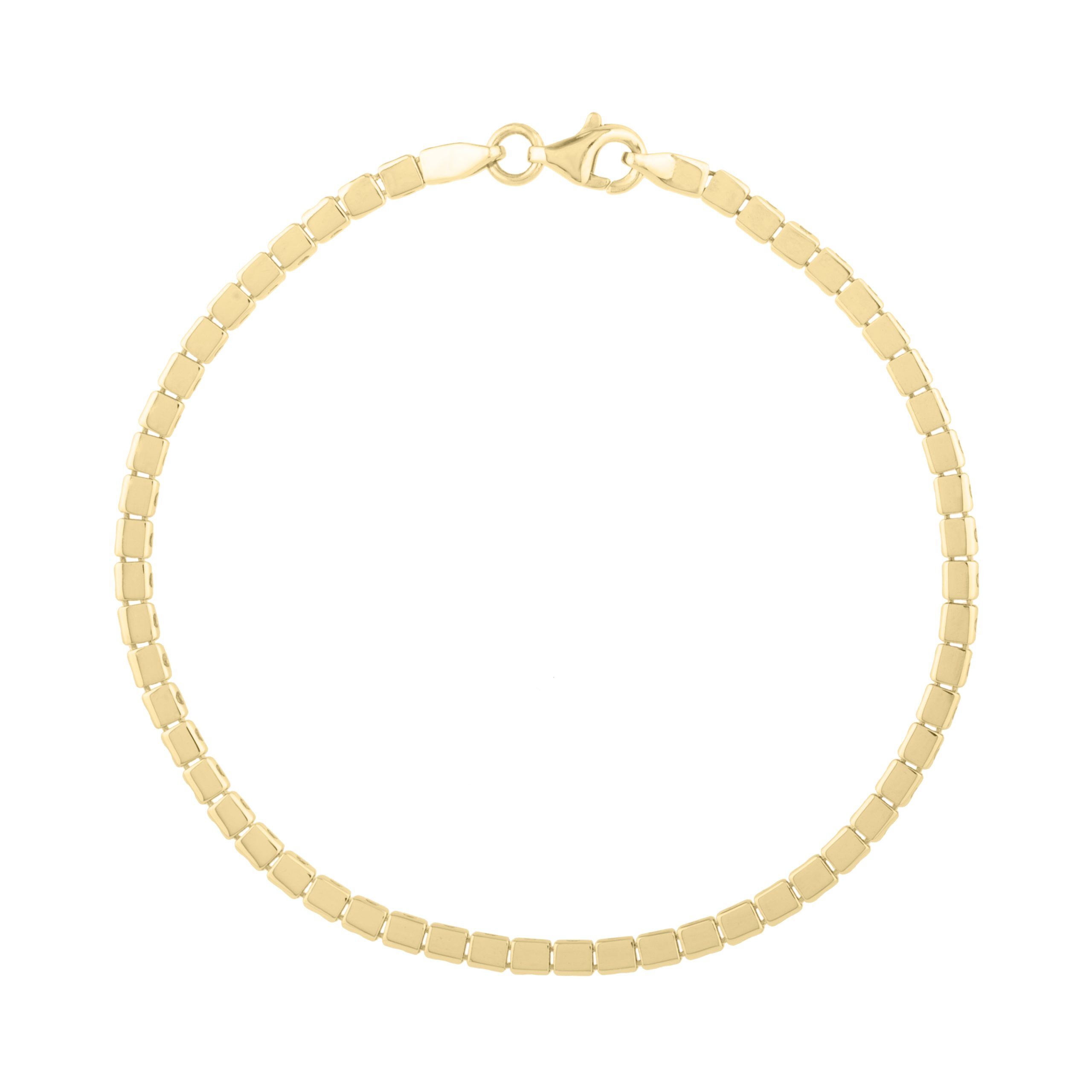 14K Yellow Gold Mini Cube 7″ Bracelet with Pear Shaped Lobster Clasp