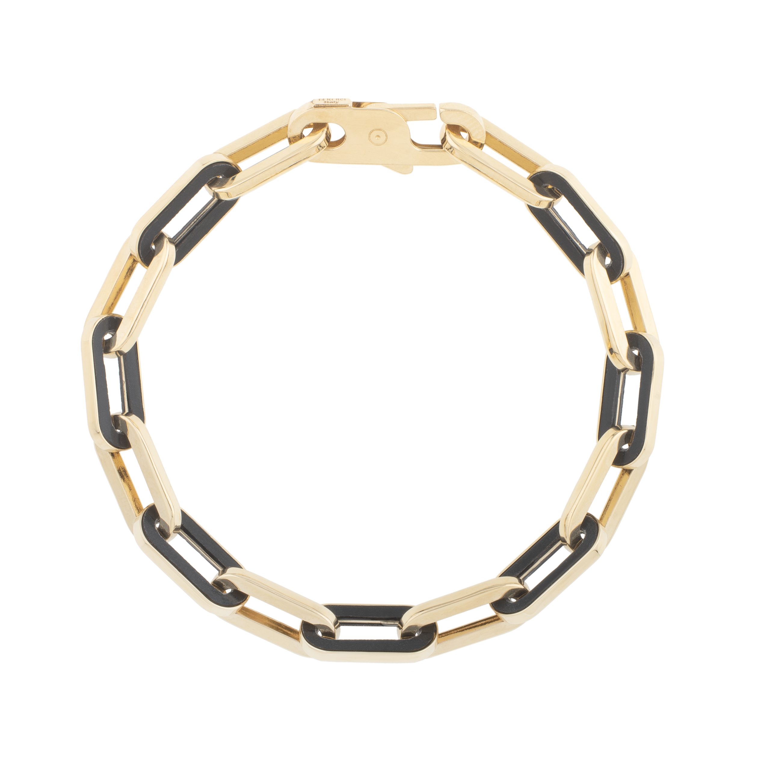 14K Yellow Gold Paperclip Gem Link 7.5″ Bracelet with Lobster Clasp and Black Onyx Black Onyx