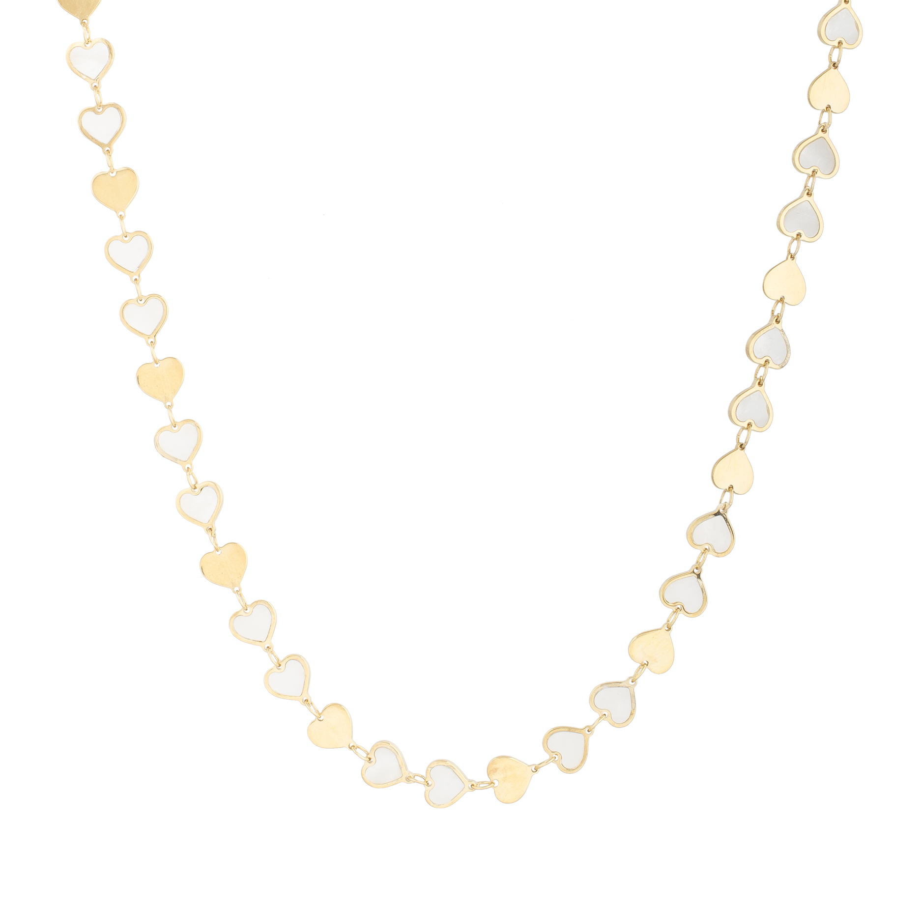 14K Yellow Gold Heart Mirror Gem Chain 7.25″ Bracelet with Pear Shaped Lobster Clasp & Mother of Pearl White Mother of Pearl