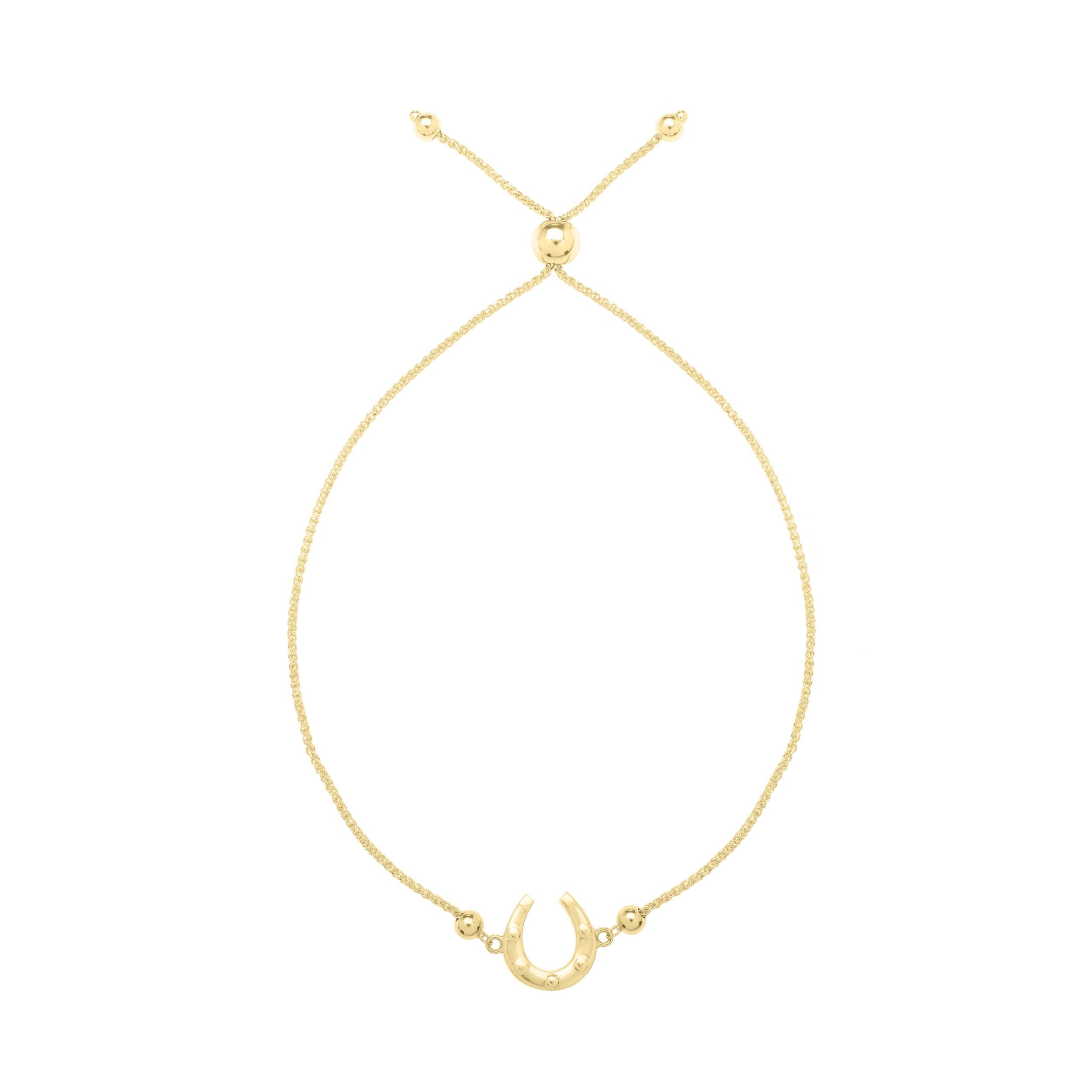14K Yellow Gold Adjustable Horseshoe Heart 9″ Bracelet with Draw String Clasp