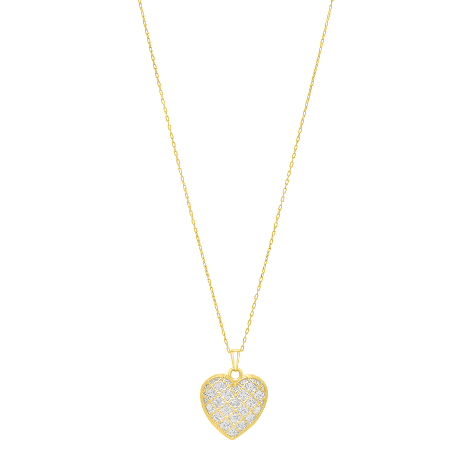 14K Gold Diamond Cut Checkered Heart 18″ Necklace with Spring Ring Clasp