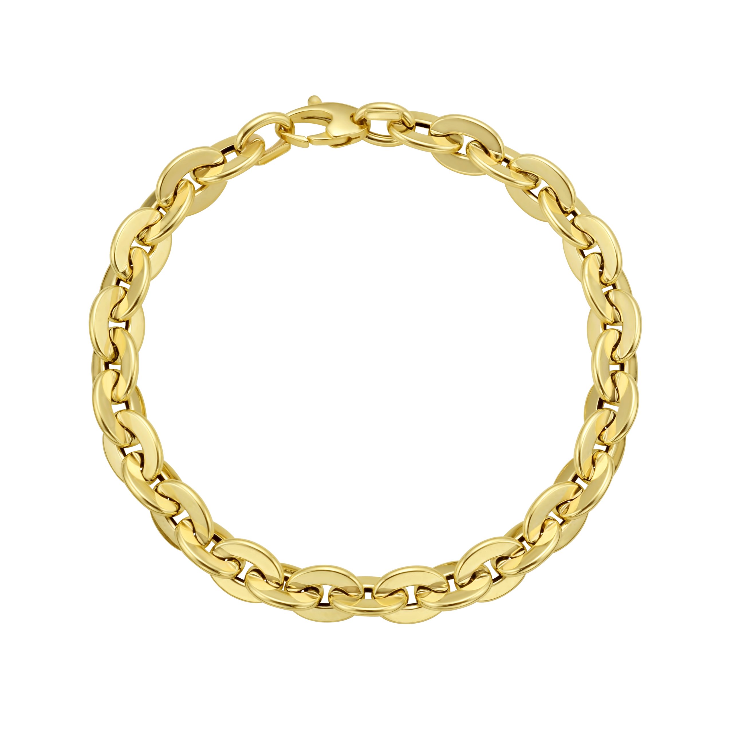 14K Yellow Gold 7.5″ Polished Mirror Rolo Link Chain Bracelet with Lobster Clasp