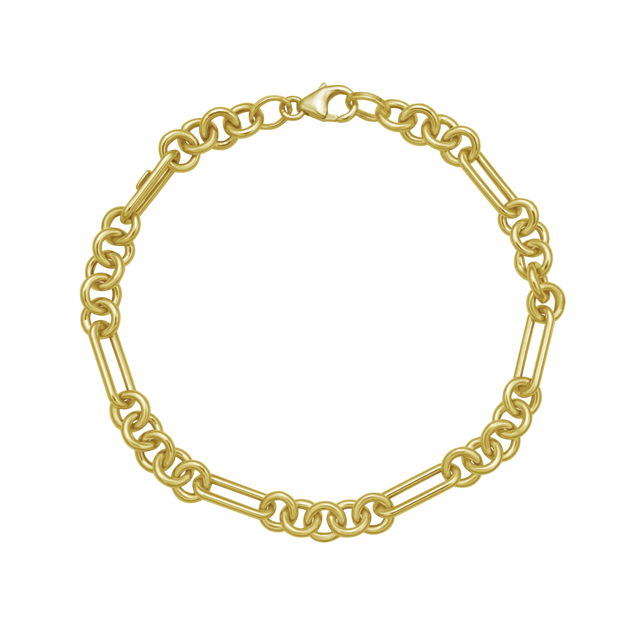 14K Yellow Gold 7.25″ Polished Five Rounds and 1 Paperclip Link Fancy Chain Bracelet with Lobster Clasp