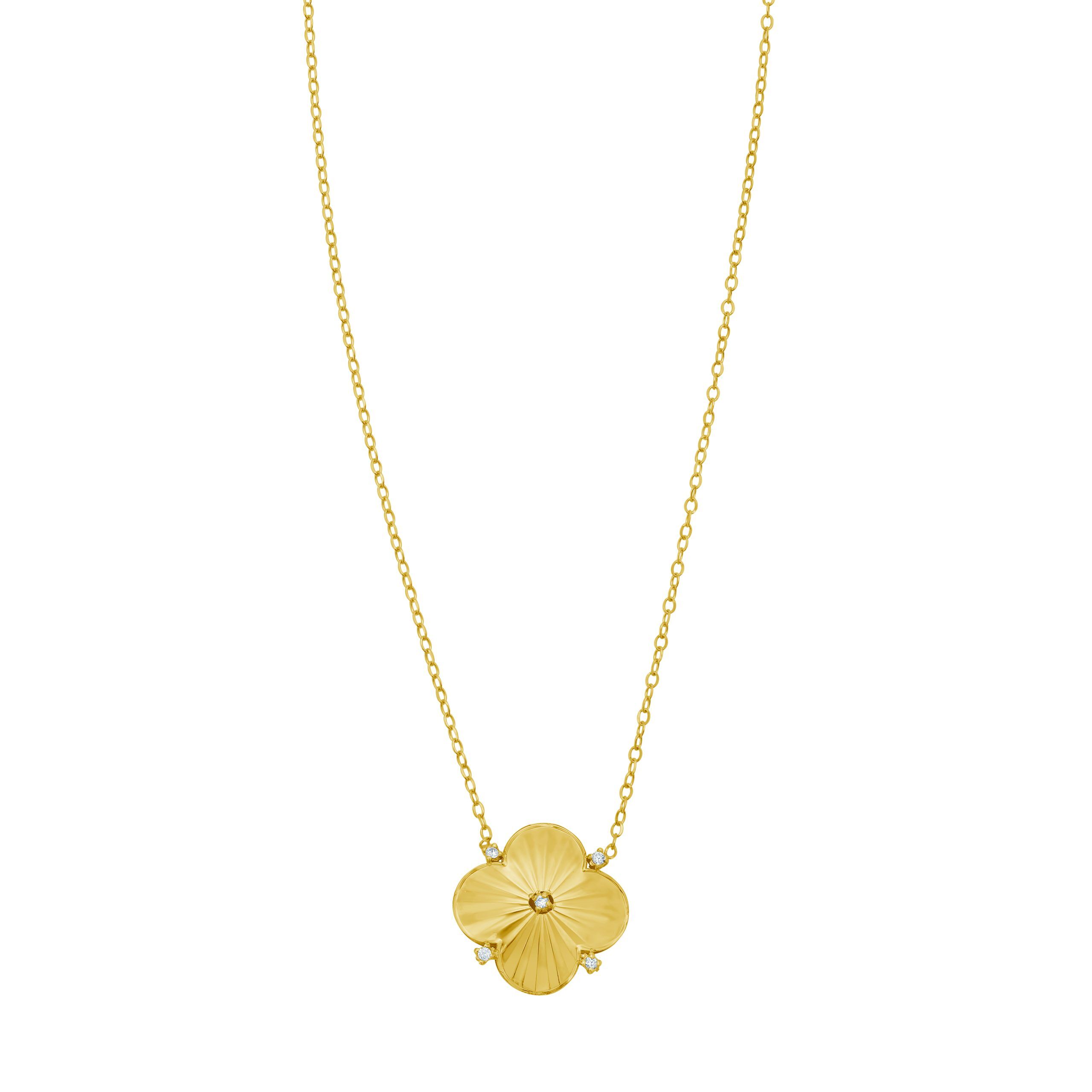 14K Yellow Gold 18″ .075ct Diamond Clover Pendant on Cable Chain with Spring Ring & Jump Ring at 16″ Diamond