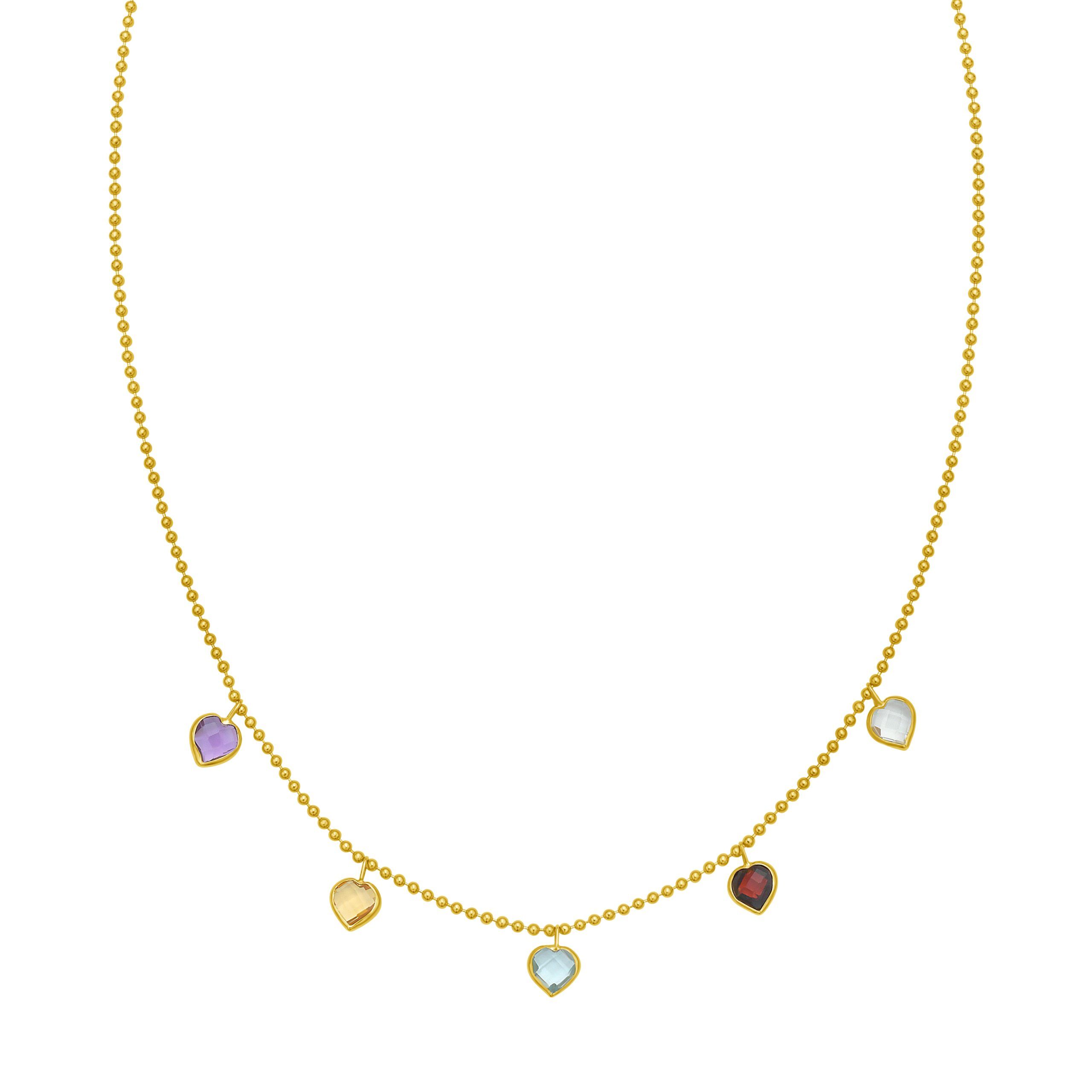 14K Yellow Gold Beaded Dancing Hearts Necklace Chain with Amethyst Citrine Blue Topaz Garnet White Topaz with Lobster Clasp. AMETHYST