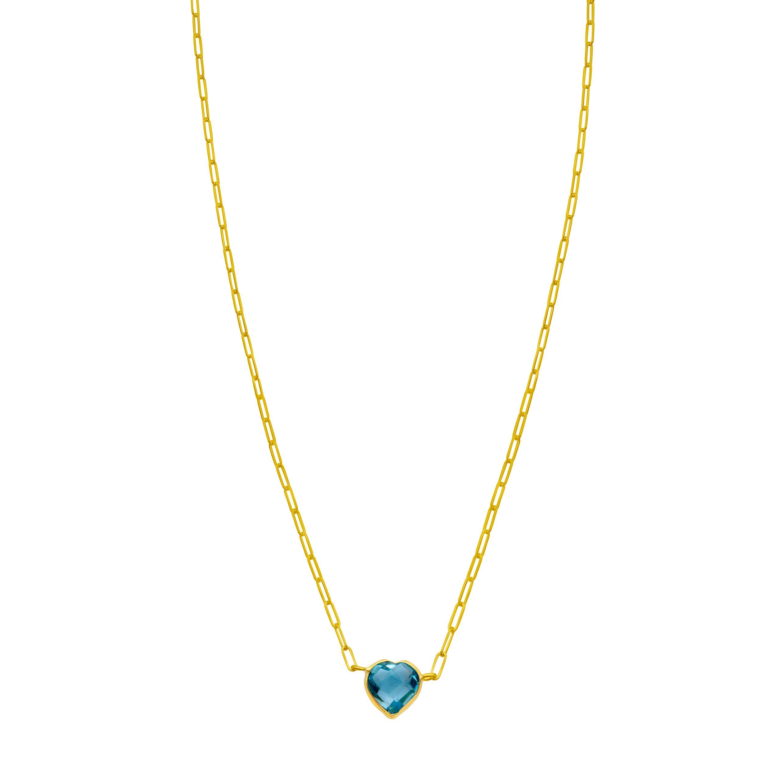 14K Yellow Gold 18″ Polished Blue Topaz Heart Necklace with Lobster Clasp including Jump Ring at 15.75″ TOPAZ