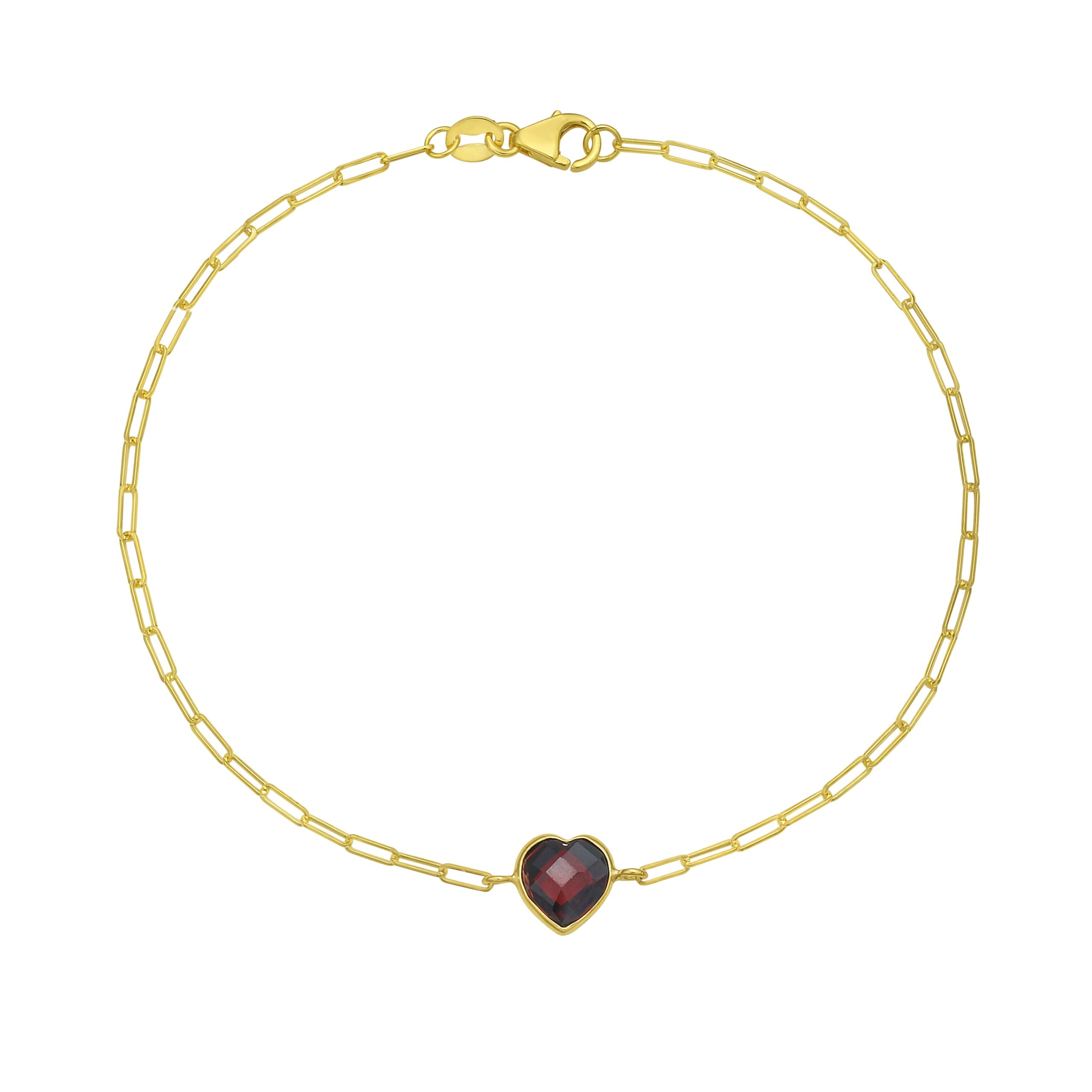 14K Yellow Gold 18″ Polished Garnet Heart Bracelet with Lobster Clasp GARNET