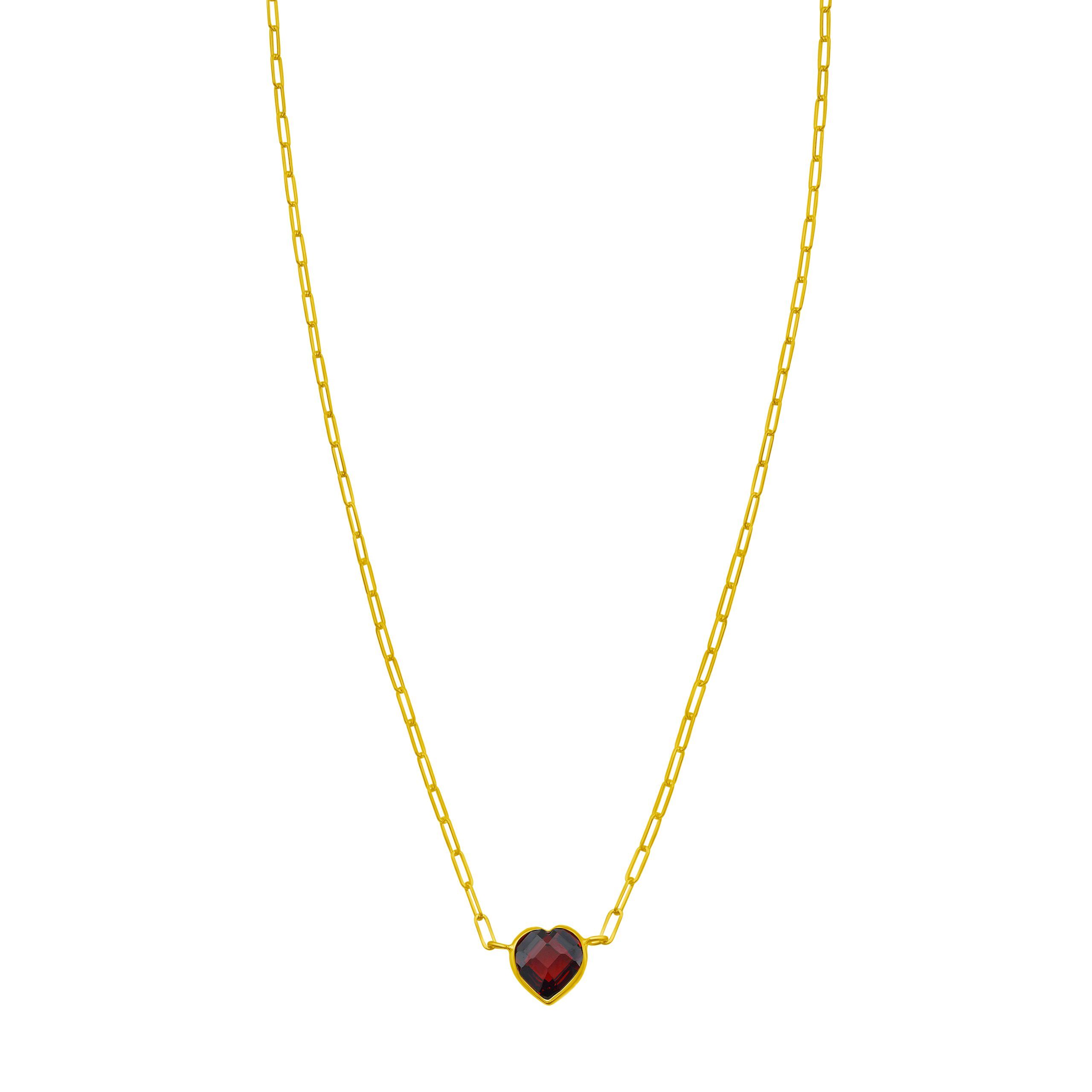 14K Yellow Gold 18″ Polished Garnet Heart Necklace with Lobster Clasp including Jump Ring at 15.75″ GARNET