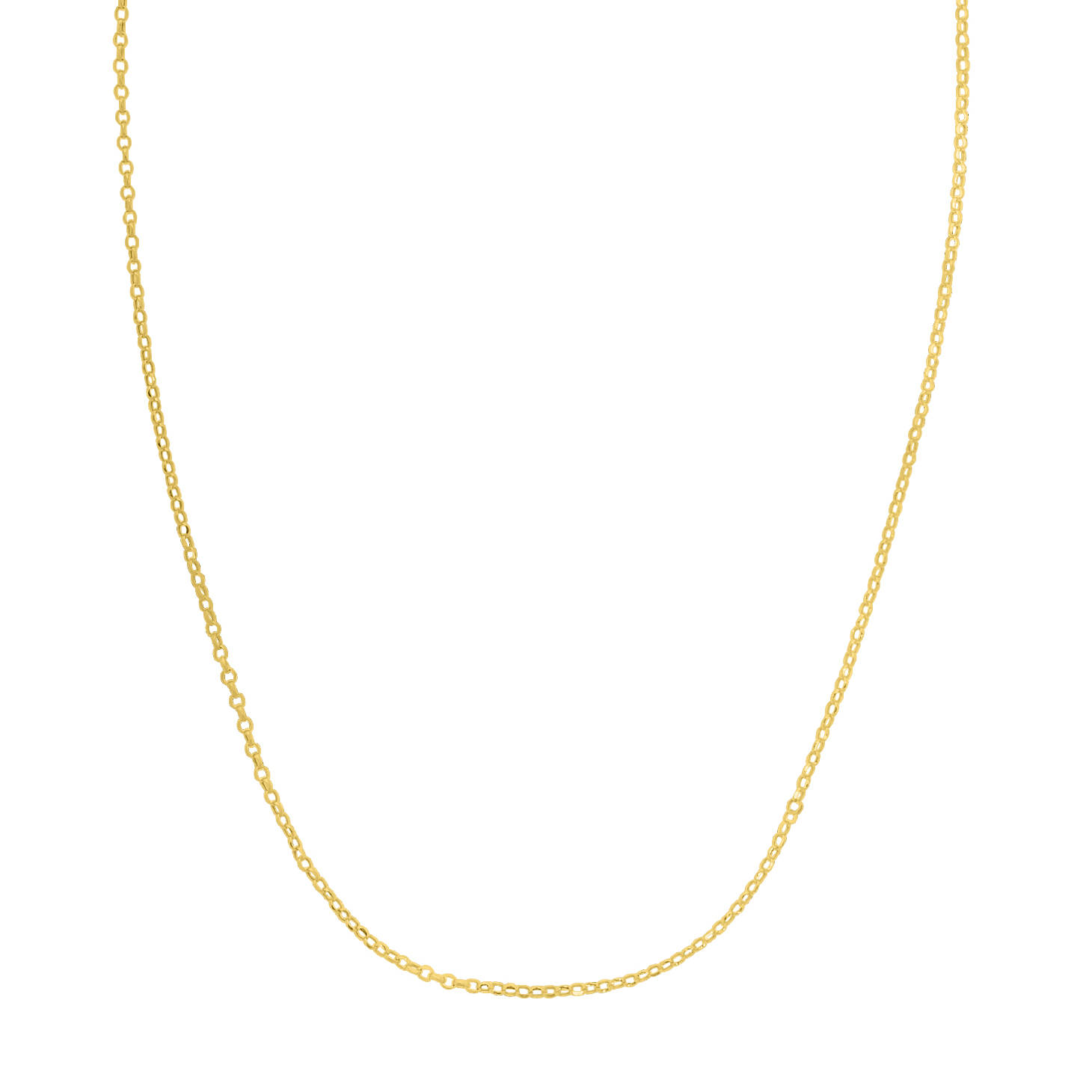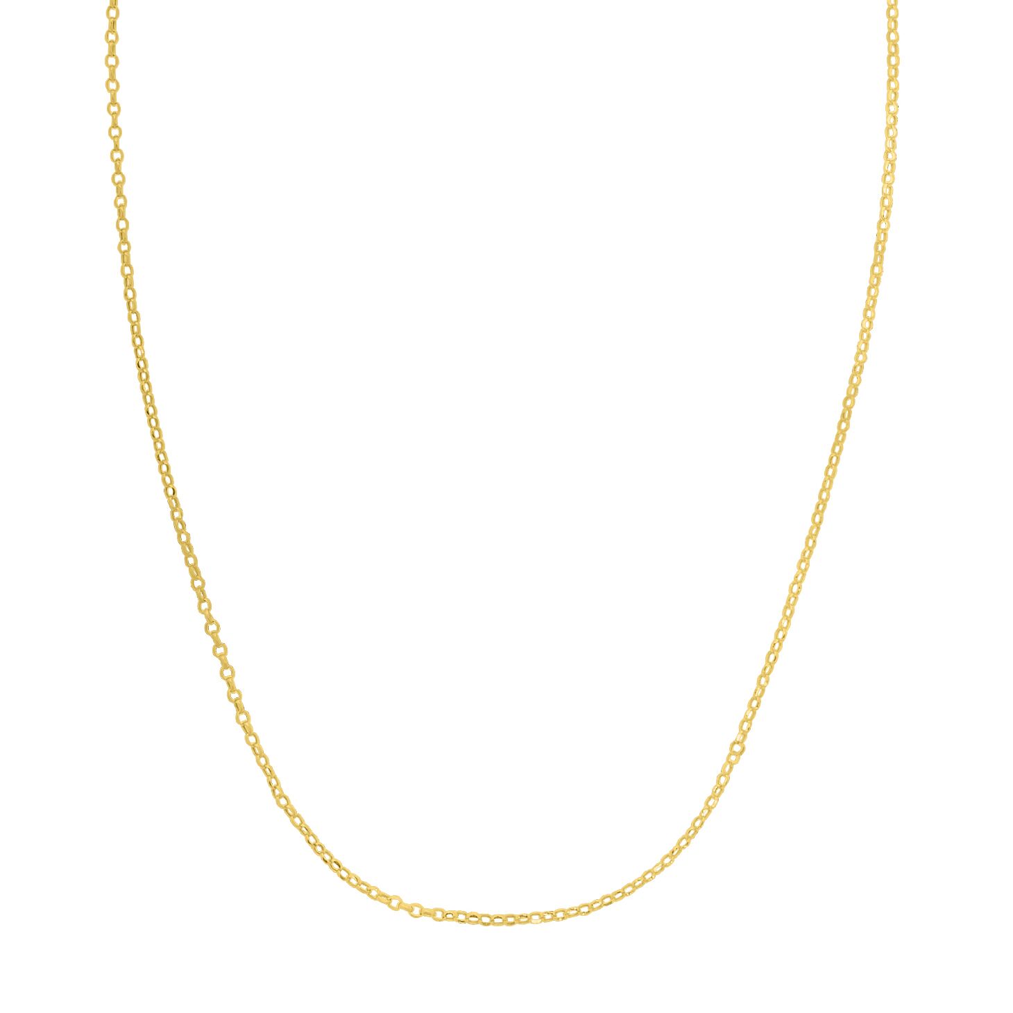 14K Yellow Gold Diamond Cut Lite Rolo Double Extendable Chain with Lobster Clasp. 18″ Total length with jump ring at 16″ and 17″.