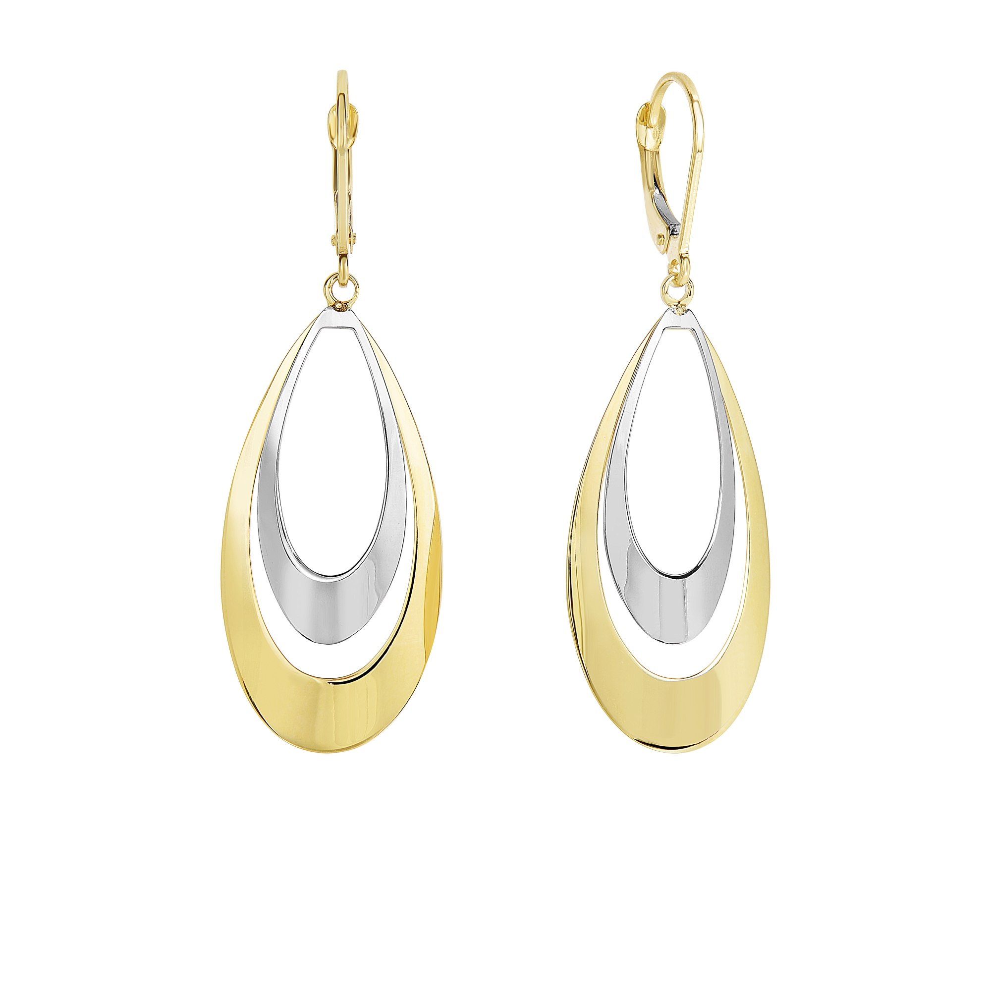 14K Yellow & White Gold Tear Drop Dangle Earring