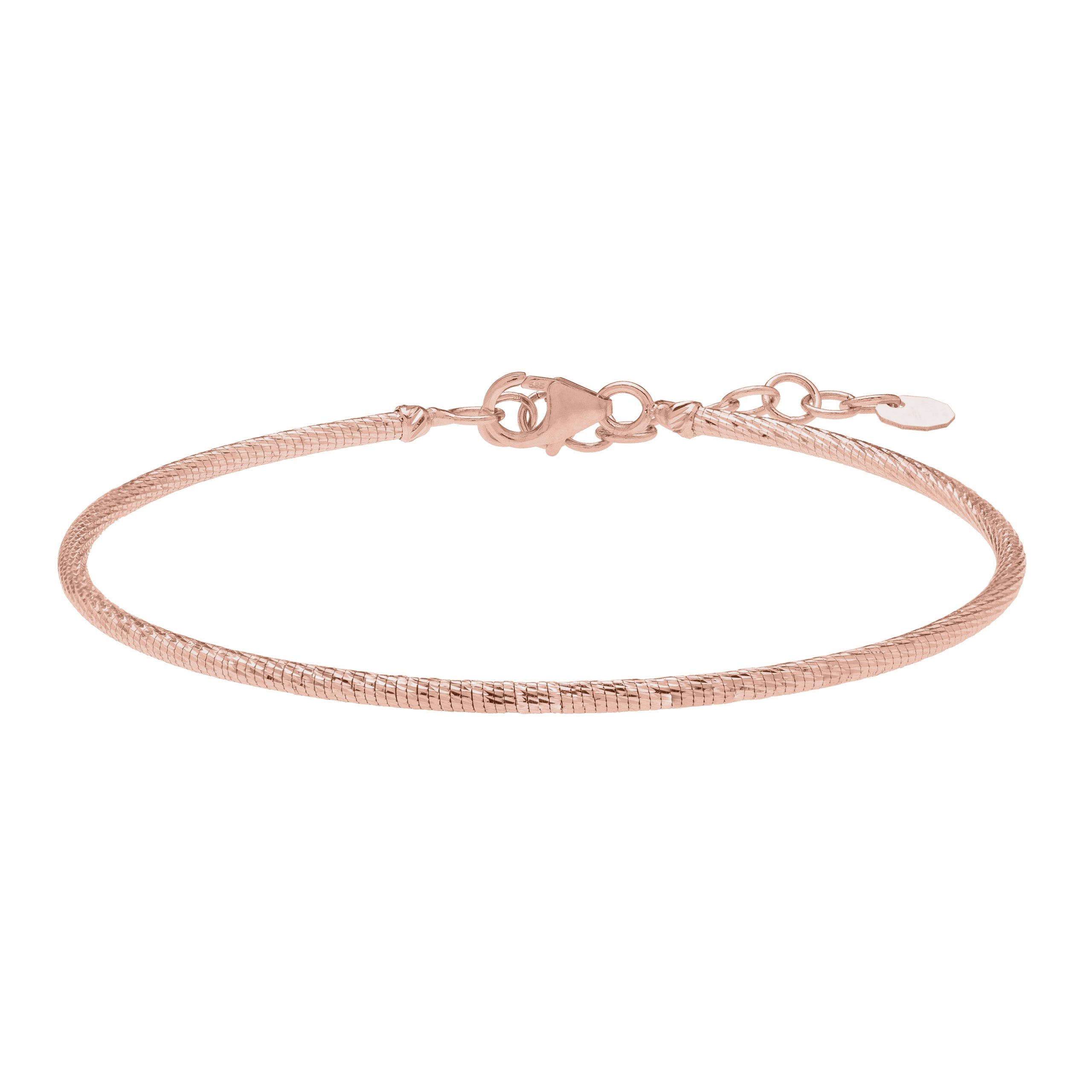 14K Rose Gold Diamond Cut Stack 7″ Bracelet with Pear Shaped Lobster Clasp