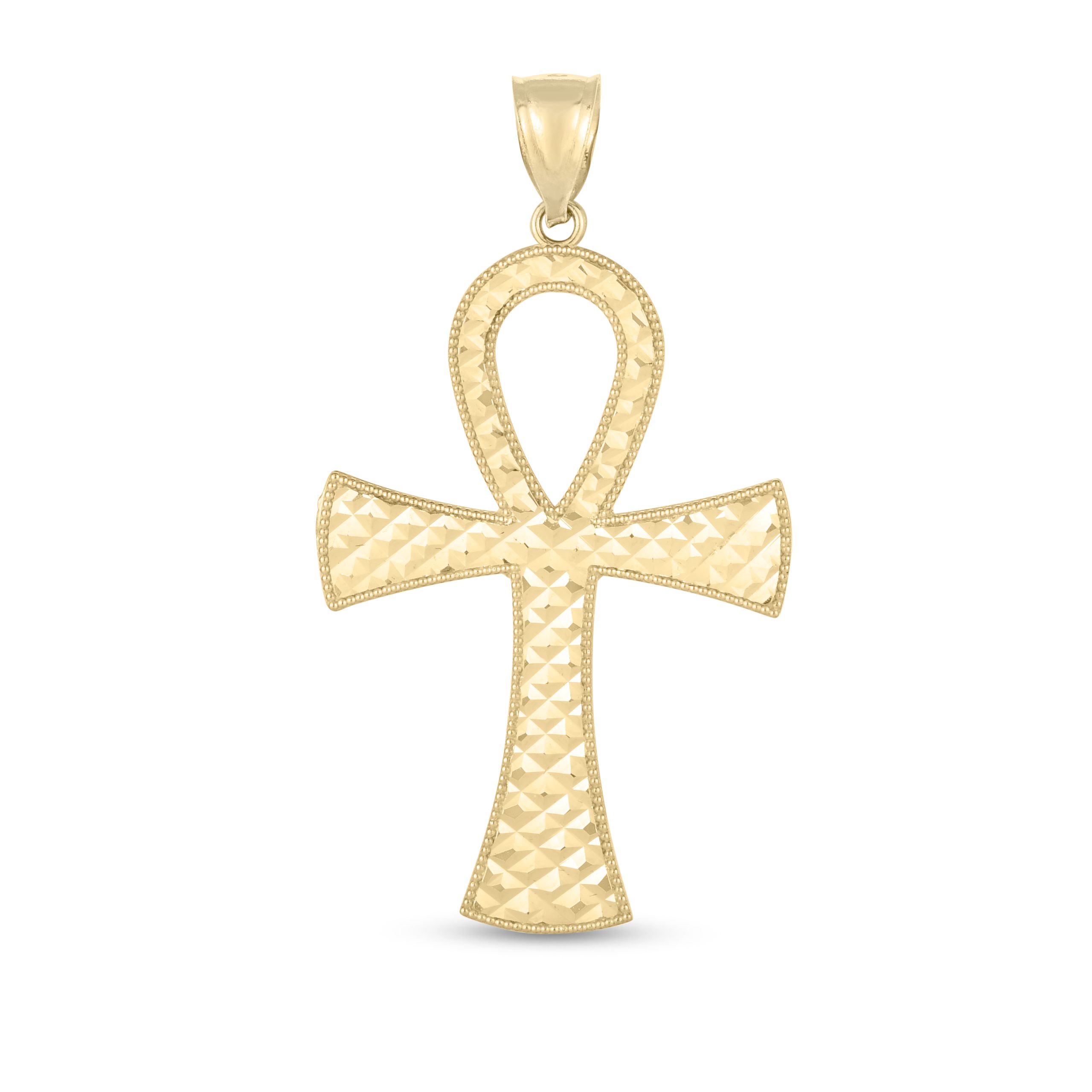 14K Yellow Gold Textured Ankh Cross Pendant. Sold Individually. Pair it with any of our basic chains.