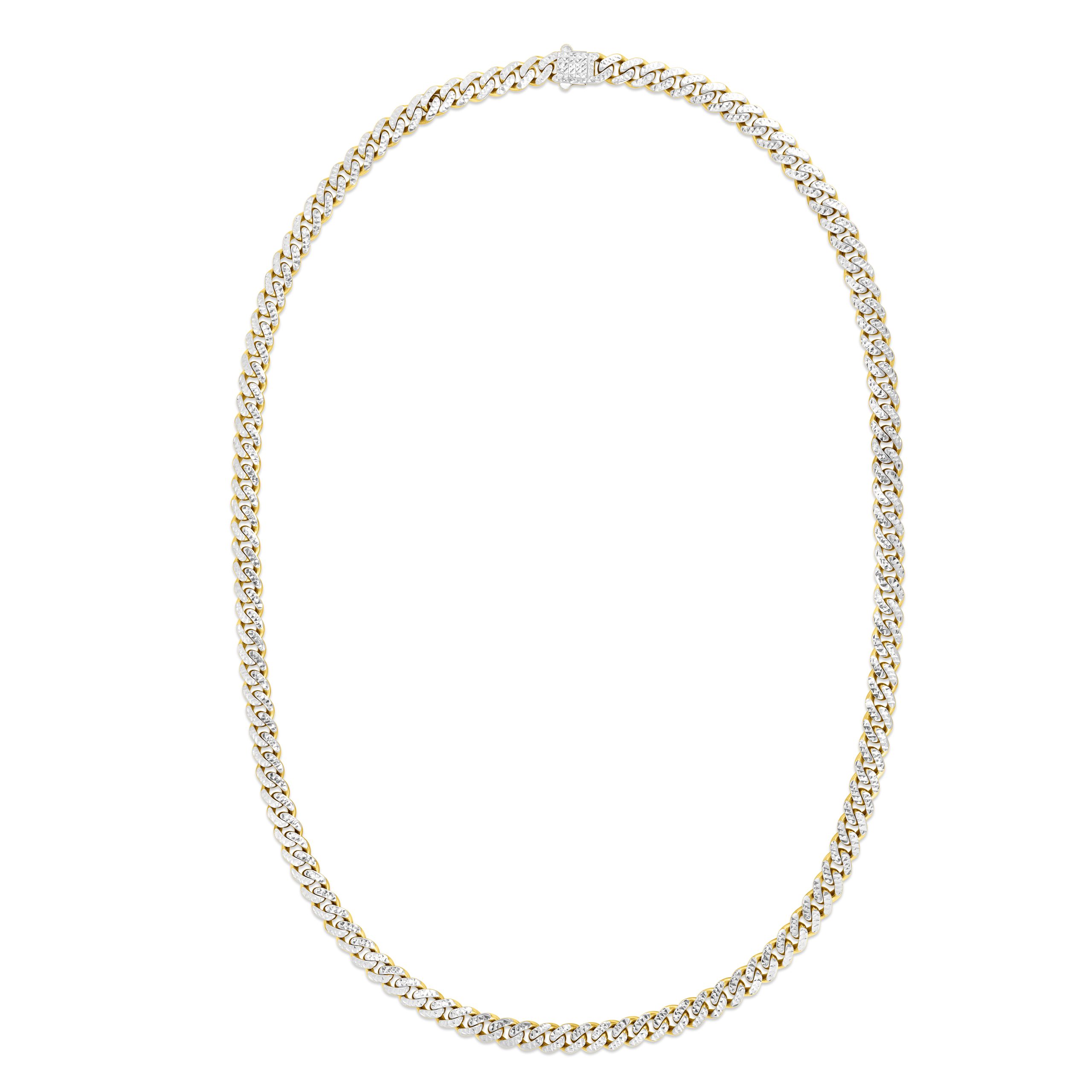 14K Yellow Gold 6.5mm White Pave Modern Lite 22″ Miami Cuban Chain Necklace with Box (Both Side Push) Clasp.