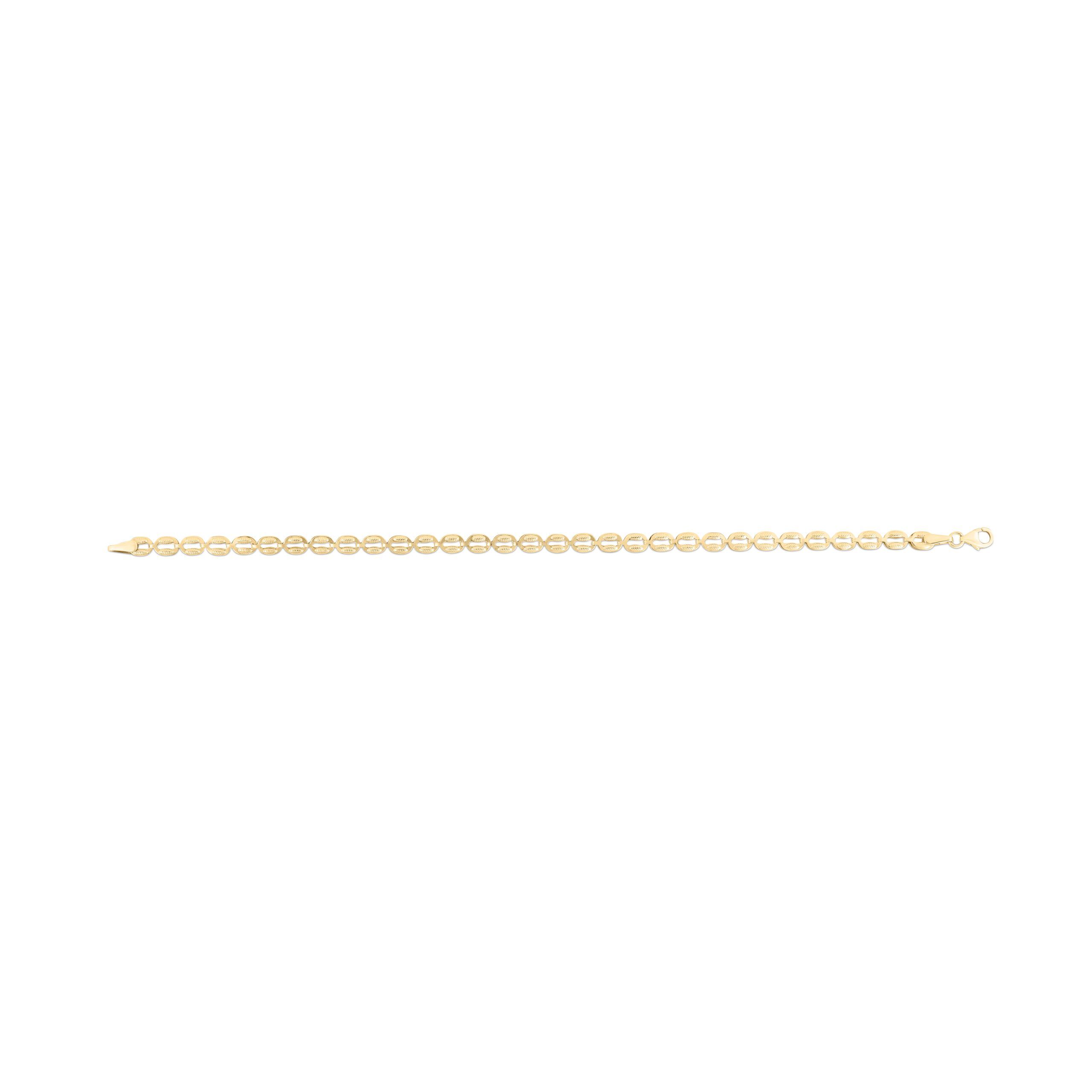 14K Yellow Gold Textured 7″ Puffed Oval Link Chain Bracelet with Lobster Clasp.