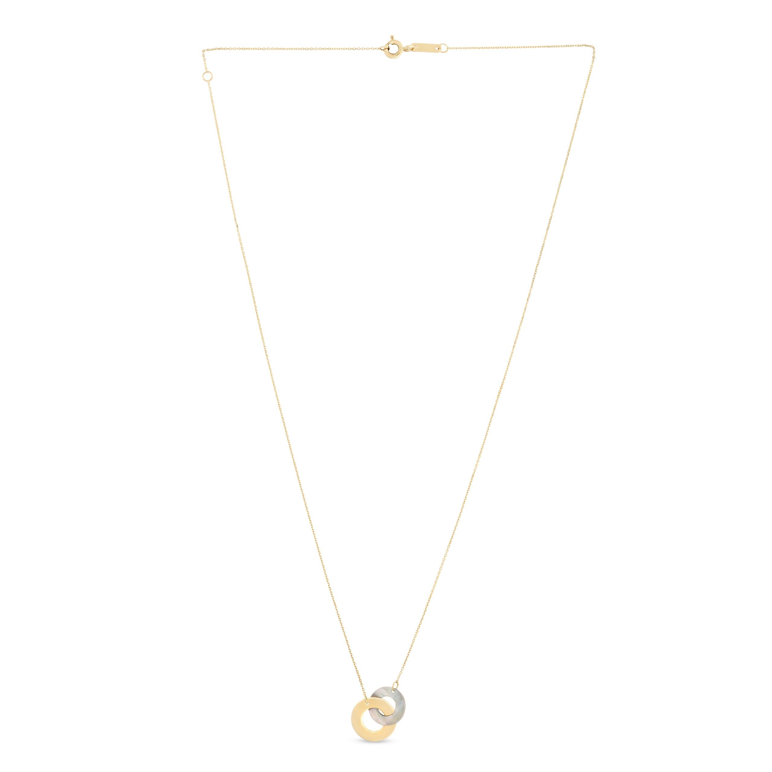14K Polished Yellow Gold & Mother of Pearl Circles Necklace with Spring Ring Clasp. Total length 18″ with jump ring at 16″