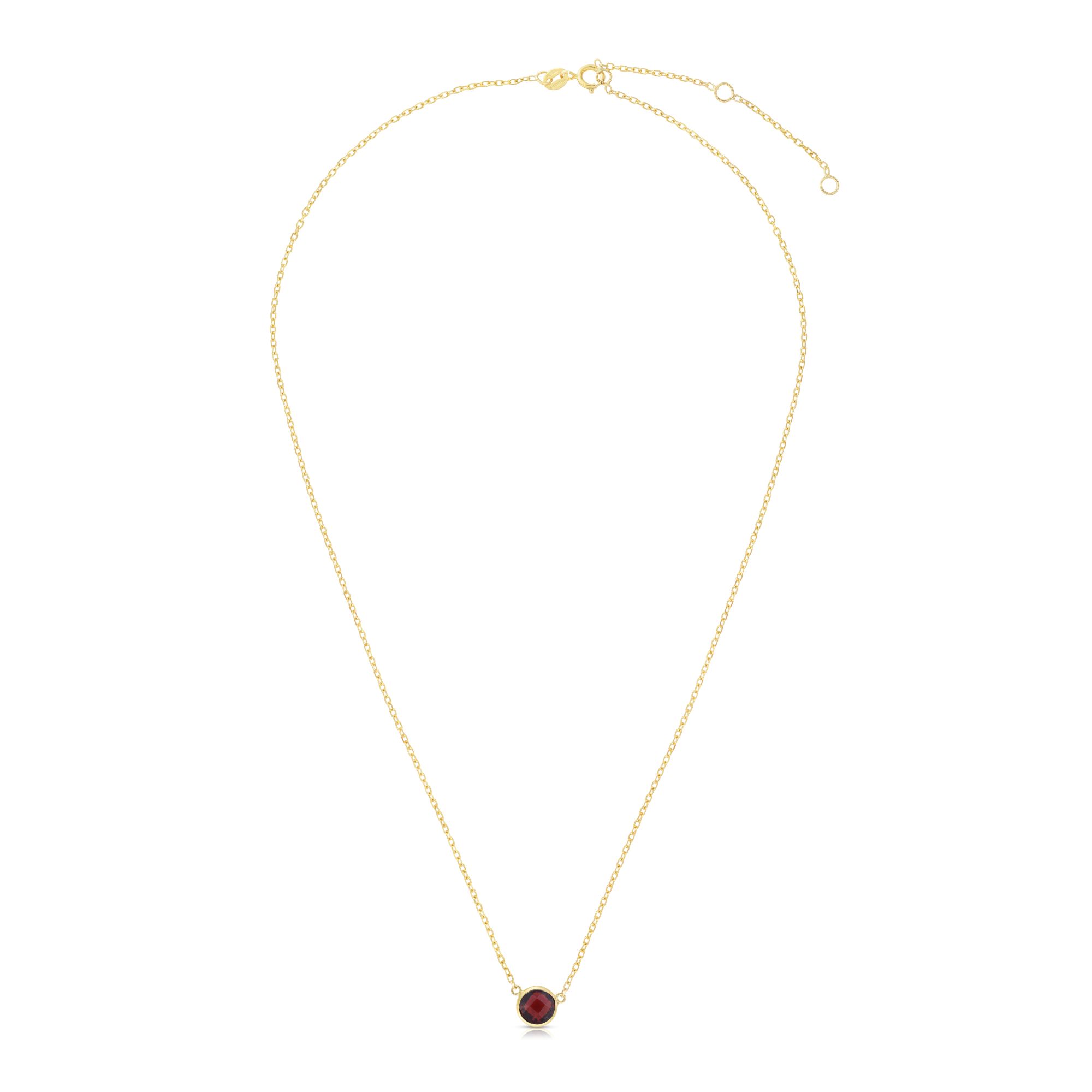 14K Yellow Gold 17″ Semi-Precious Round Garnet Solitaire Necklace Garnet