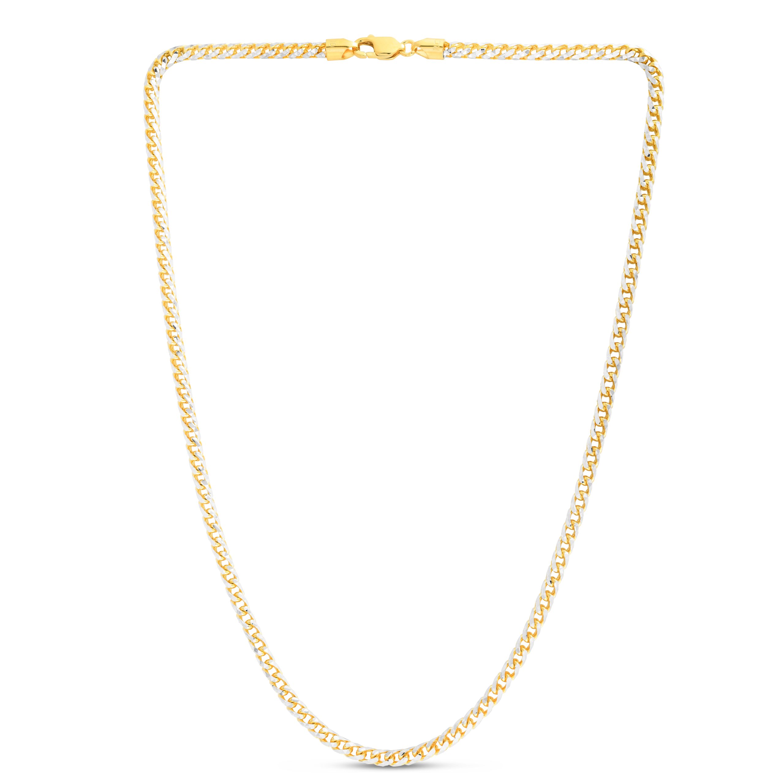 14K Two-tone Gold 4mm Round Pave Franco 8″ Chain Bracelet with Lobster Clasp